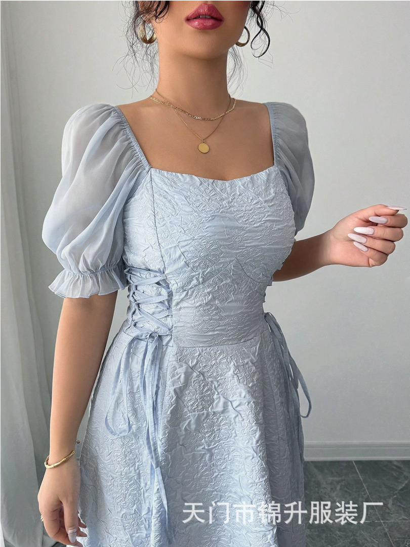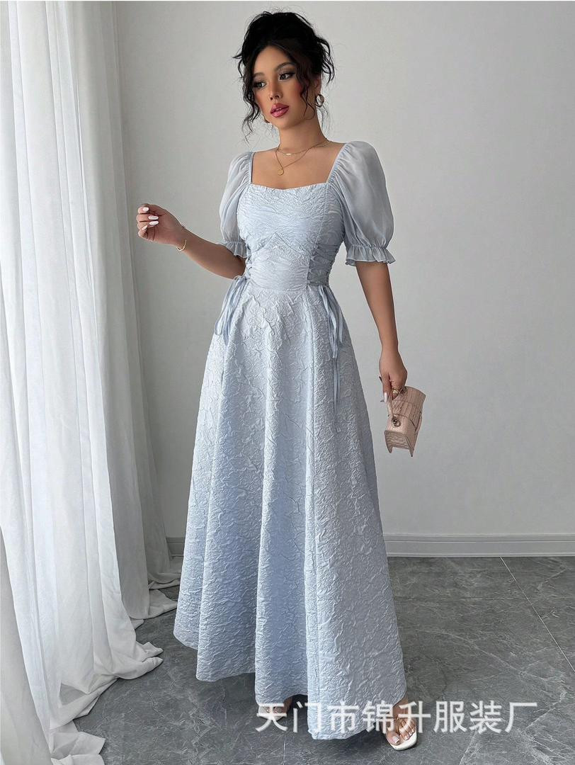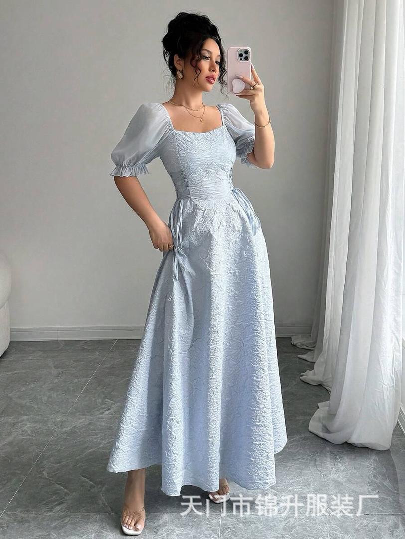 فستان نسائي فرنسي بأكمام منفوشة وربطة خصر – تصميم أنثوي ناعم وأنيق لخريف 2025 | قصة واسعة تُبرز القوام وتخفي العيوب