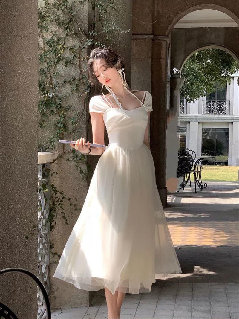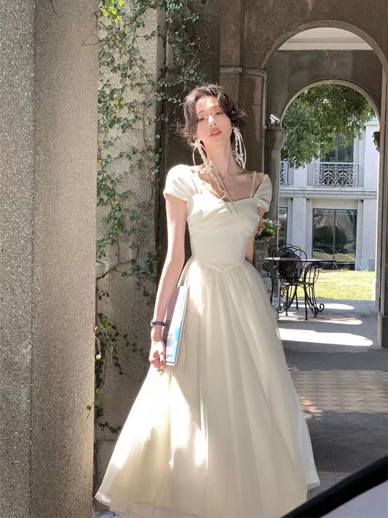 فستان نسائي ستايل راقي، بتصميم ناعم ورومانسي، قماش شبكي شفاف، بحمالات رفيعة، صيفي موديل جديد، مستوحى من إطلالة “الحب الأول”، خصر مجسم لإبراز النحافة، قصة A طويلة