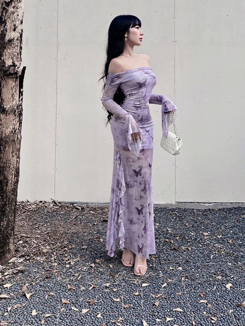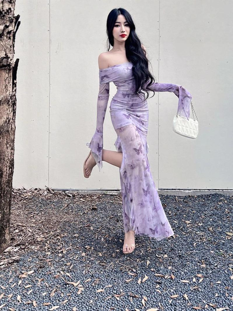 فستان نسائي طويل( أكتاف مكشوفة-لون بنفسجي)