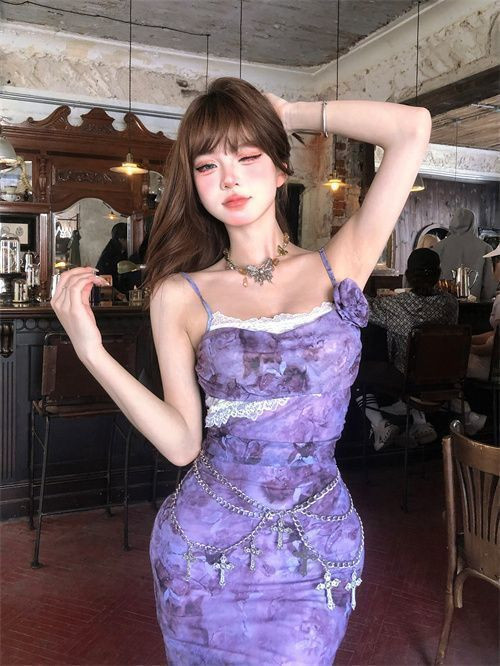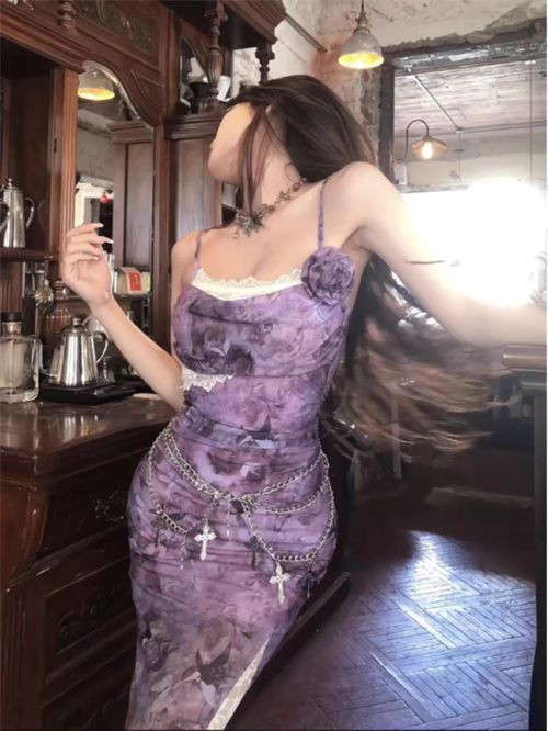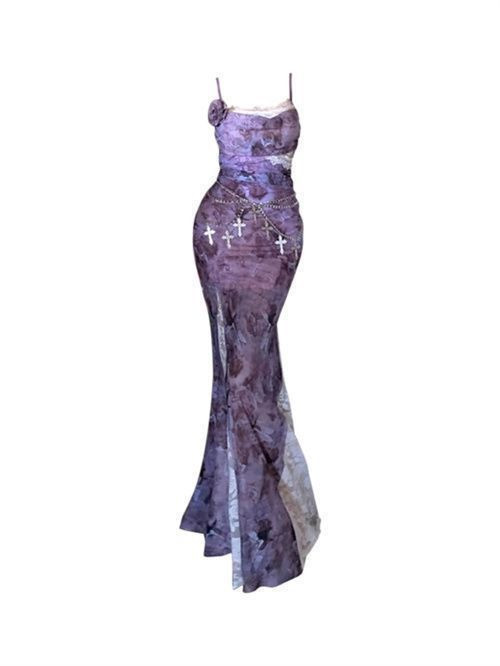 فستان نسائي طويل(لون بنفسجي-تصميم ضيق بحمالات رفيعة)