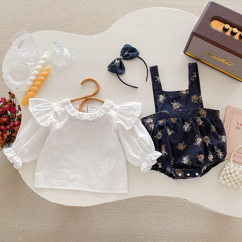 فستان رضع بناتي بطبعة أزهار مع قميص داخلي ربطة شعر