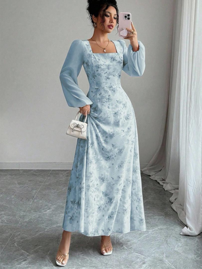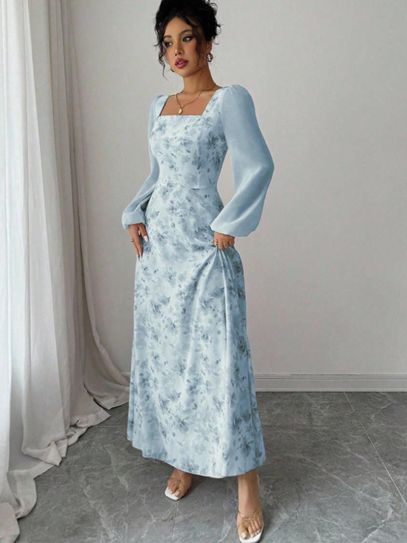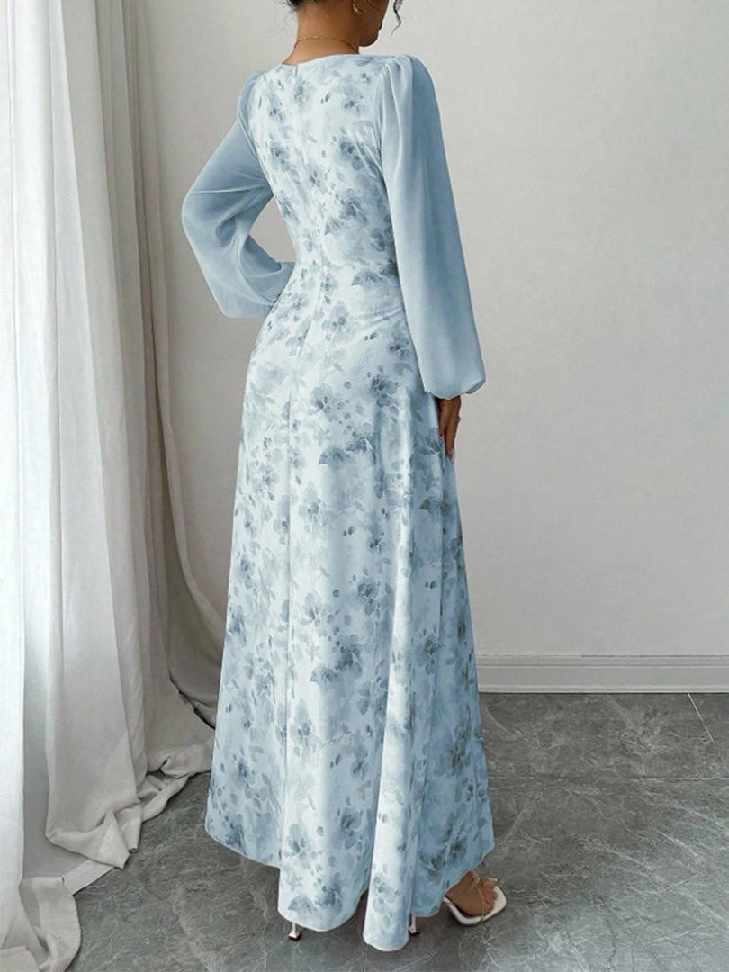 فستان شيفون فرنسي من رويهـو بطبعة زهور صغيرة وتصميم ضيق راقٍ