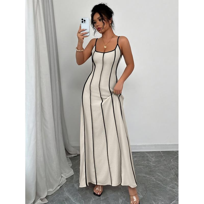 فستان طويل بأحزمة رفيعة (ستايل صيفي أنيق)