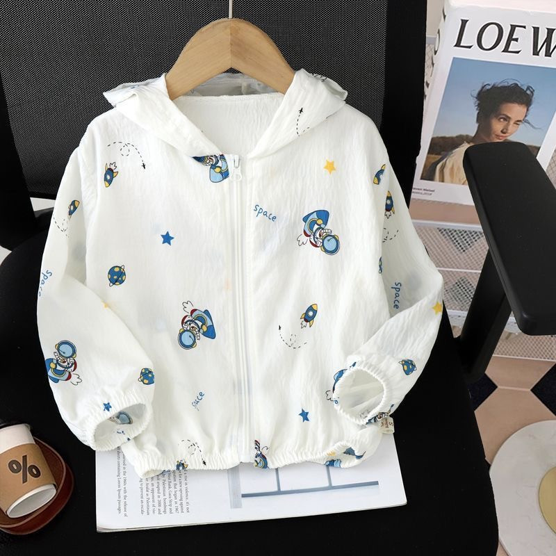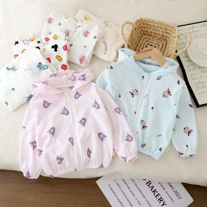 جاكيت أطفال برسومات كرتونية - حماية من الشمس - قماش خفيف