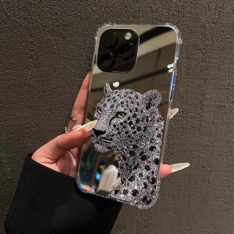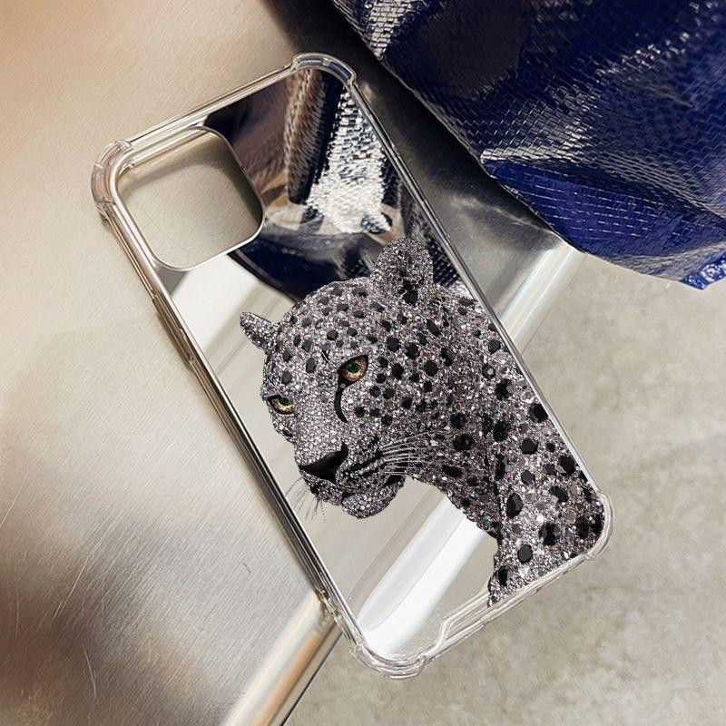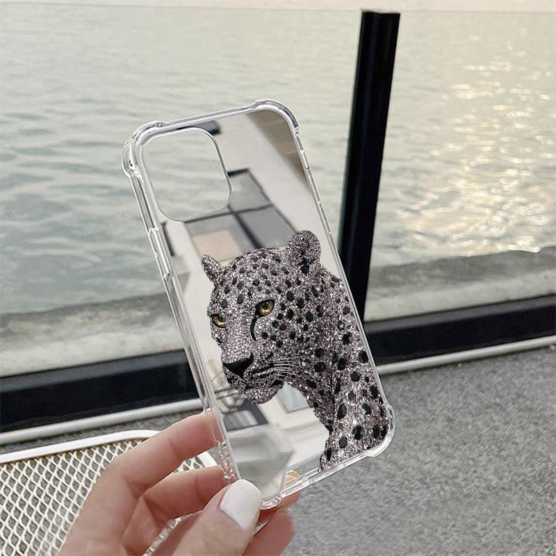 غطاء جوال فاخر بتصميم فهد ذهبي عاكس بلمسة مرآة وشفاف
