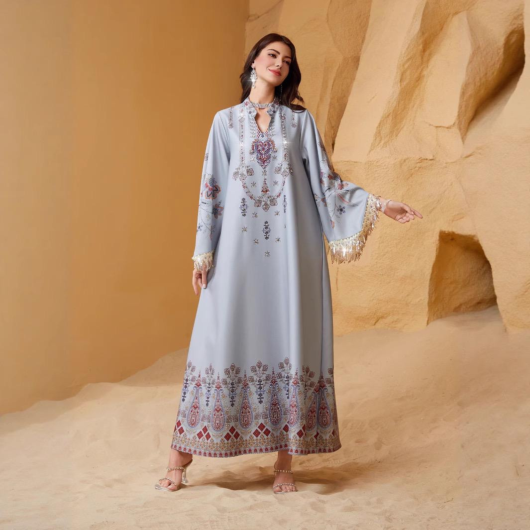 جلابية نسائي مطرز بلون أزرق سماوي