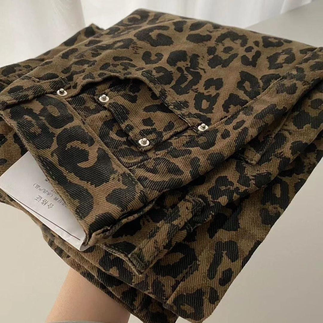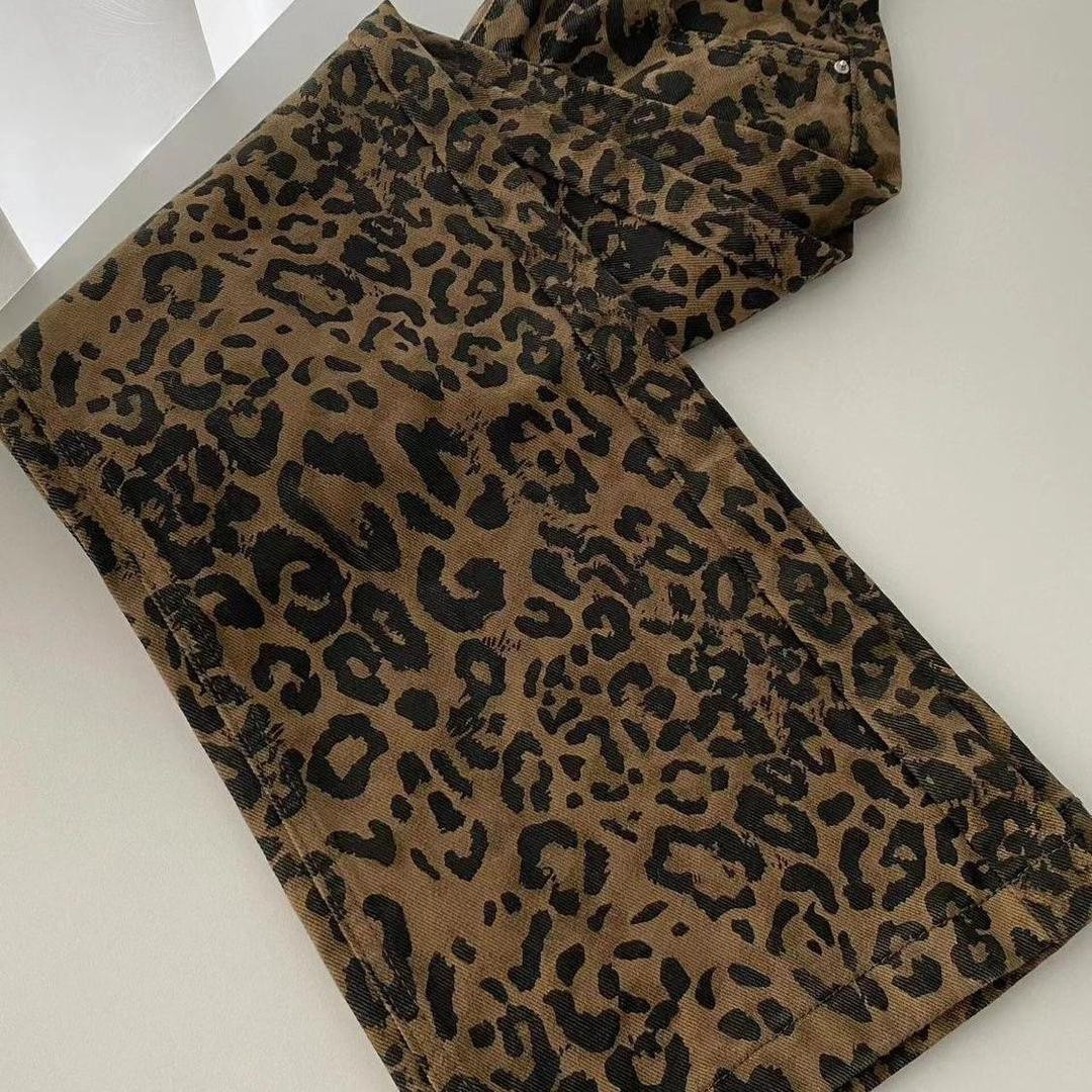 جينز واسع بنقشة فهد ستايل شارع عالي الخصر للقامات الصغيرة