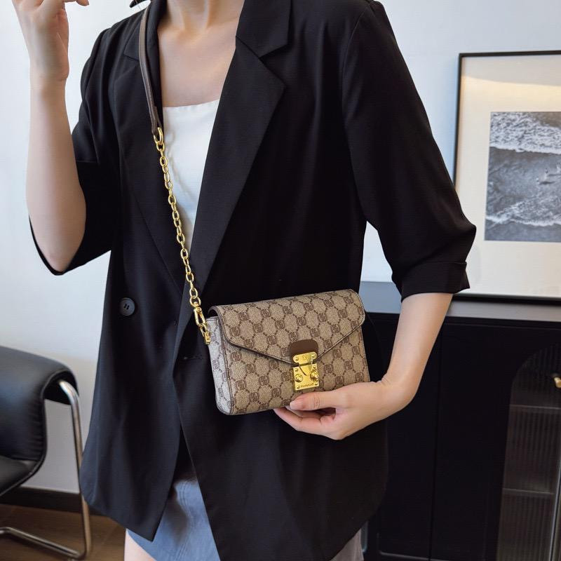حقيبة كتف فخمة بنقشة الماركات