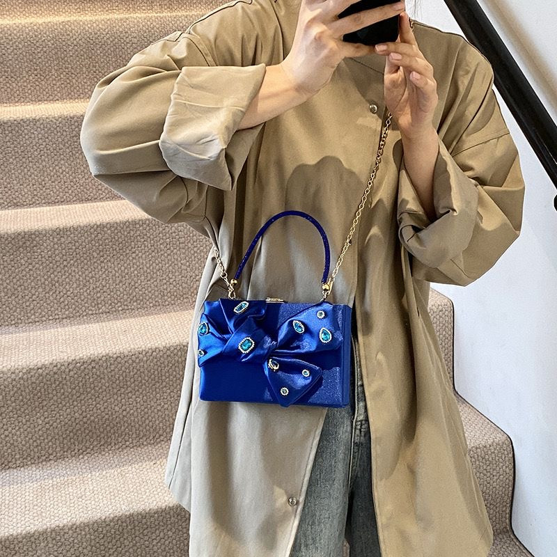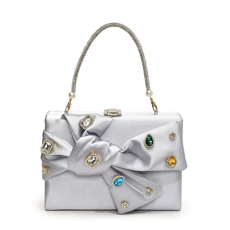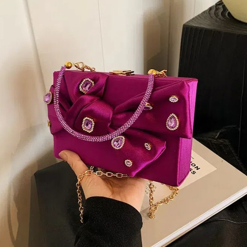 "حقيبة سهرات مزخرفة بالدانتيل مع تفاصيل لؤلؤية وألوان متنوعة"