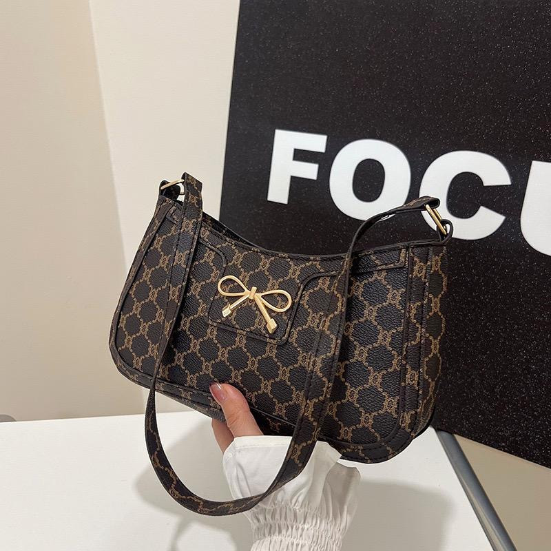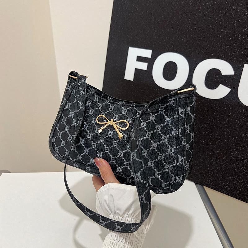 "حقيبة يد صغيرة بتصميم مميز مع فيونكة منقوشة"
