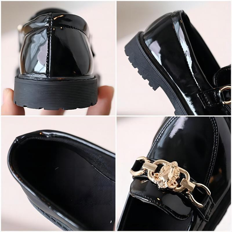 حذاء بناتي بسوار ذهبي جلدي لامع