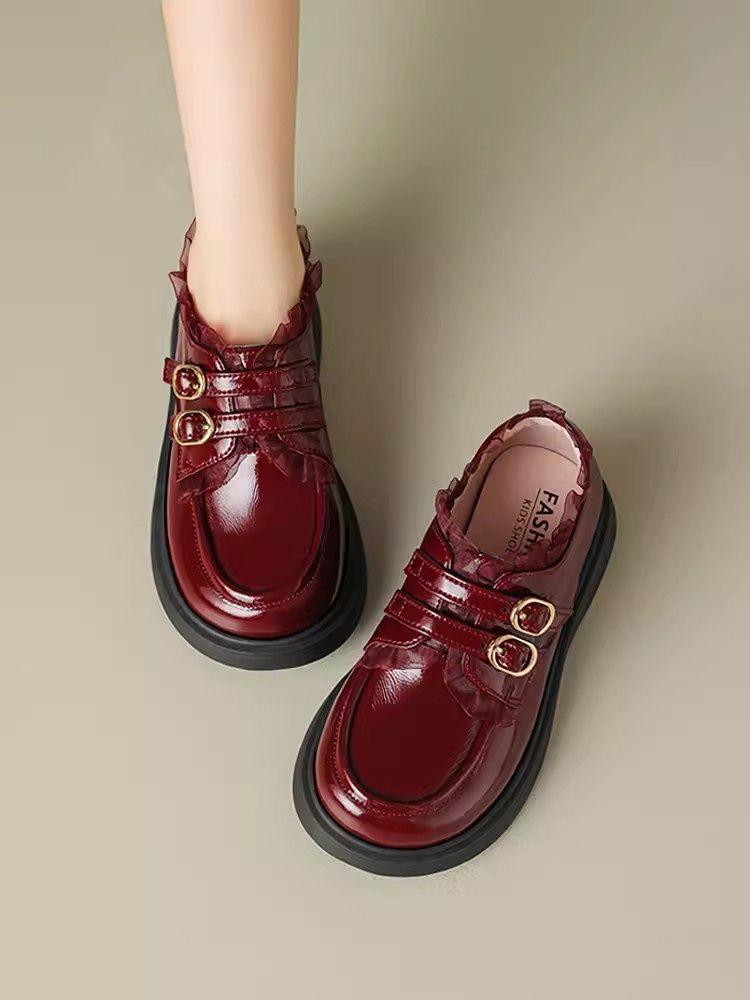 حذاء بناتي رسمي – ربيع/خريف – ستايل أميرة، بجلد لامع مع حواف مزينة،