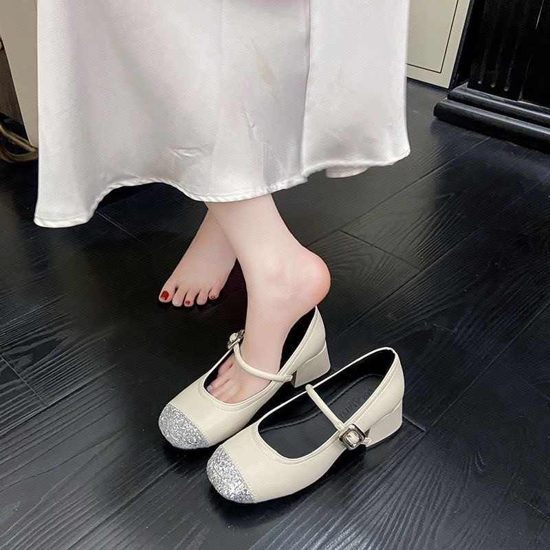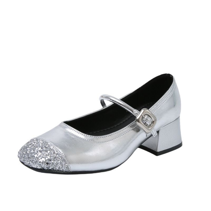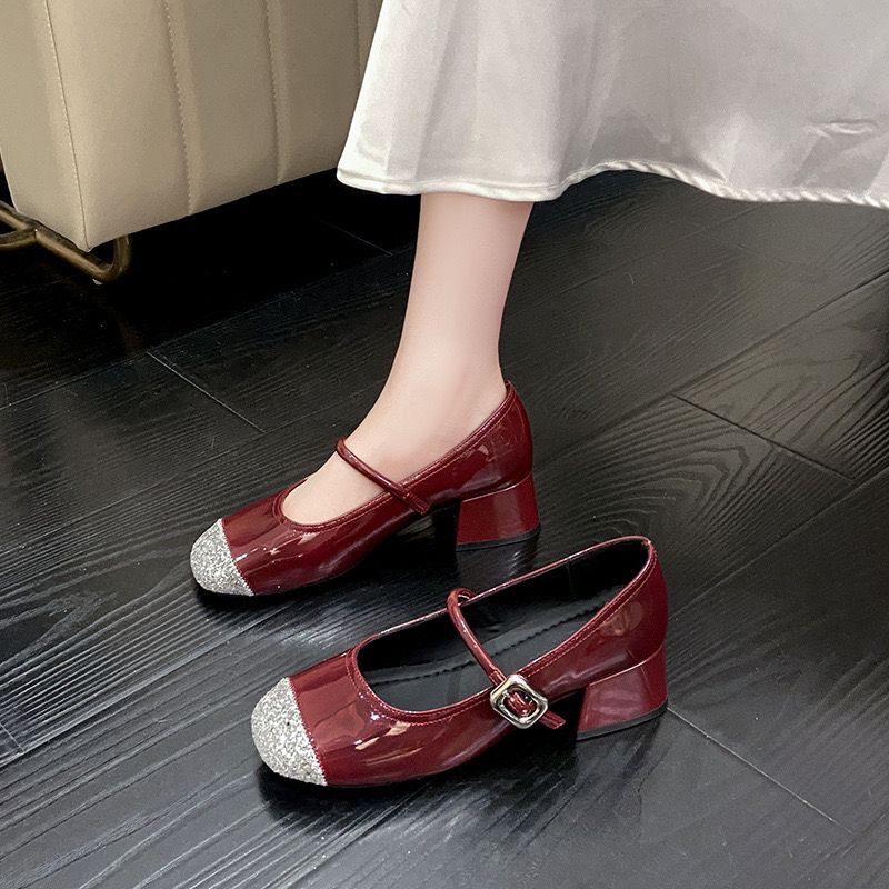 حذاء نسائي بكعب متوسط ولمعة أمامية