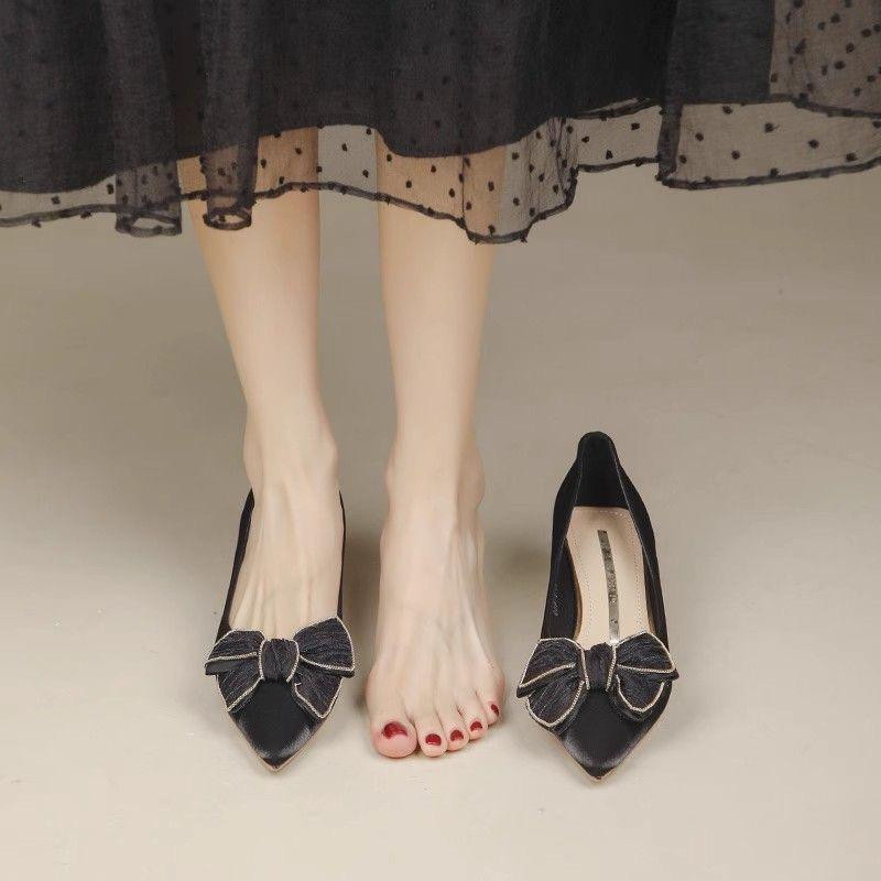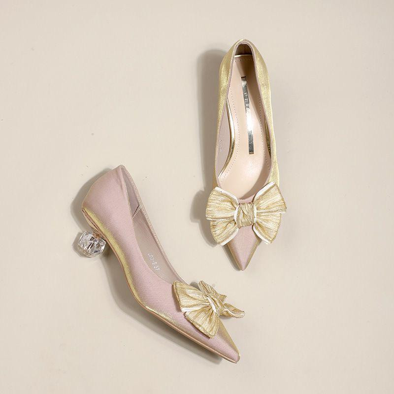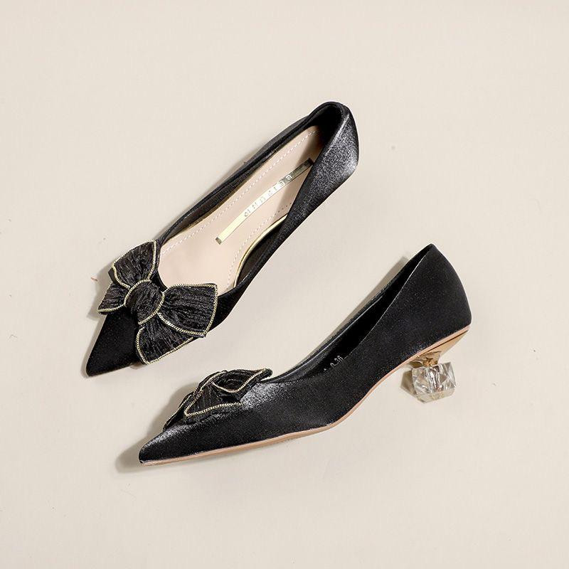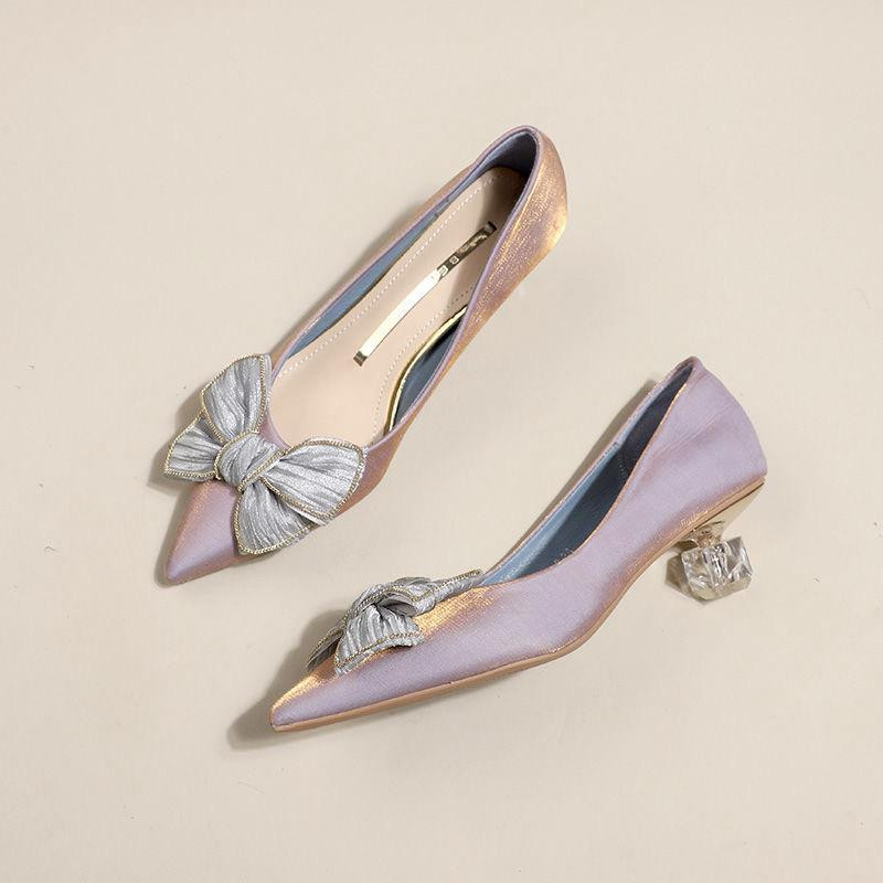 حذاء نسائي – صيف 2025 – كعب متوسط – أنيق مع فيونكة – تصميم فاخر مع كعب كريستال – مناسب للأربع فصول