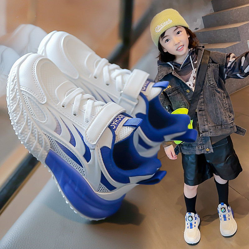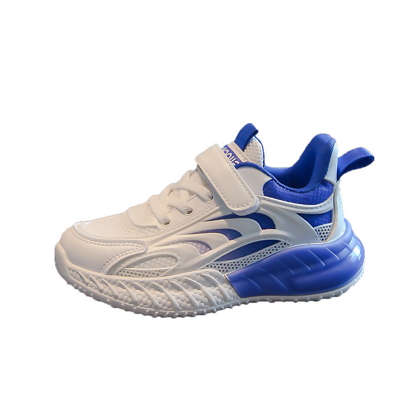 "حذاء رياضي أبيض وأزرق بتصميم عصري ومريح"
