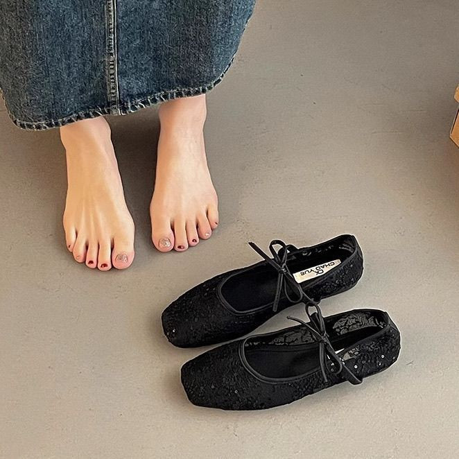 حذاءباليرينا خفيفة بفصوص ولمعة لطيفة