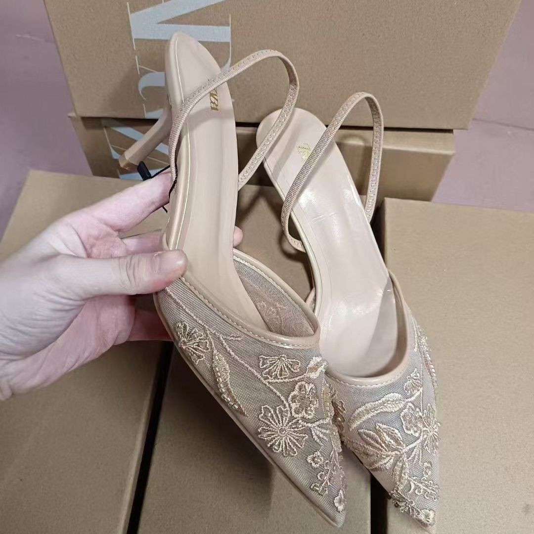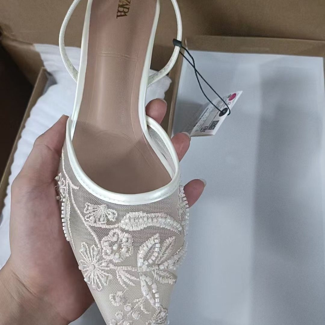 كعب نسائي أنيق بتصميم ZARA مطرّز فاخر ? بخامة شبكية ناعمة وكعب رفيع مريح لإطلالة فخمة وأنثوية ✨
