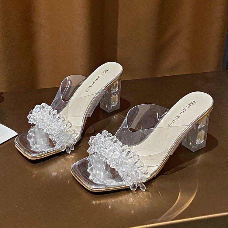كعب نسائي شفاف مزين بالخرز بكعب 7 سم
