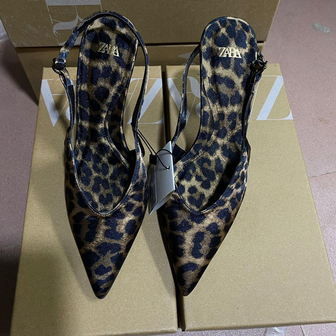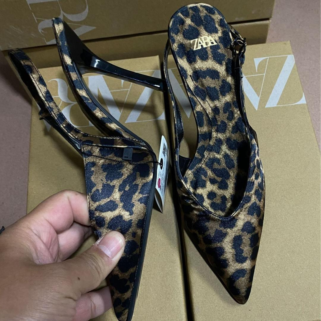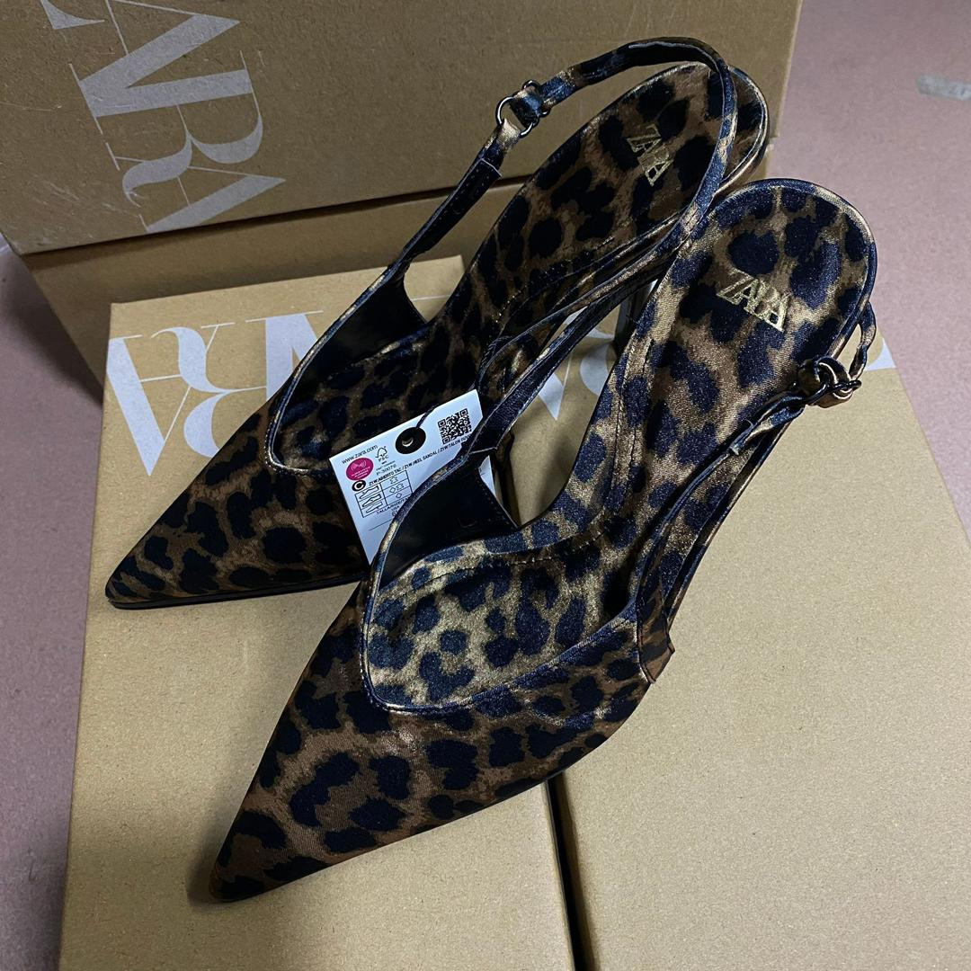 كعب ZARA بطبعة فهد أنيق بحزام خلفي وكعب رفيع