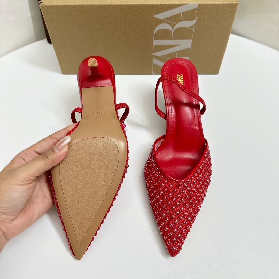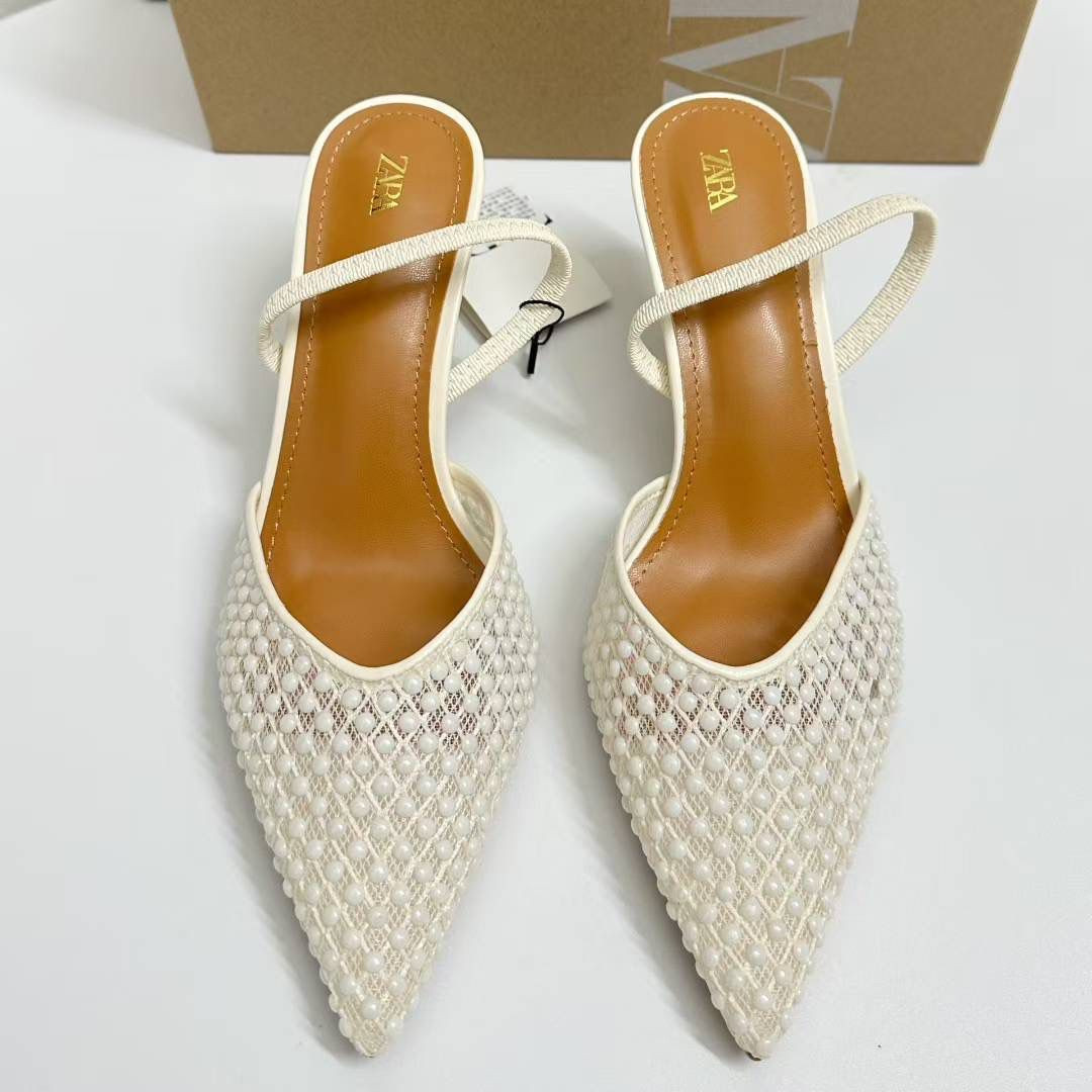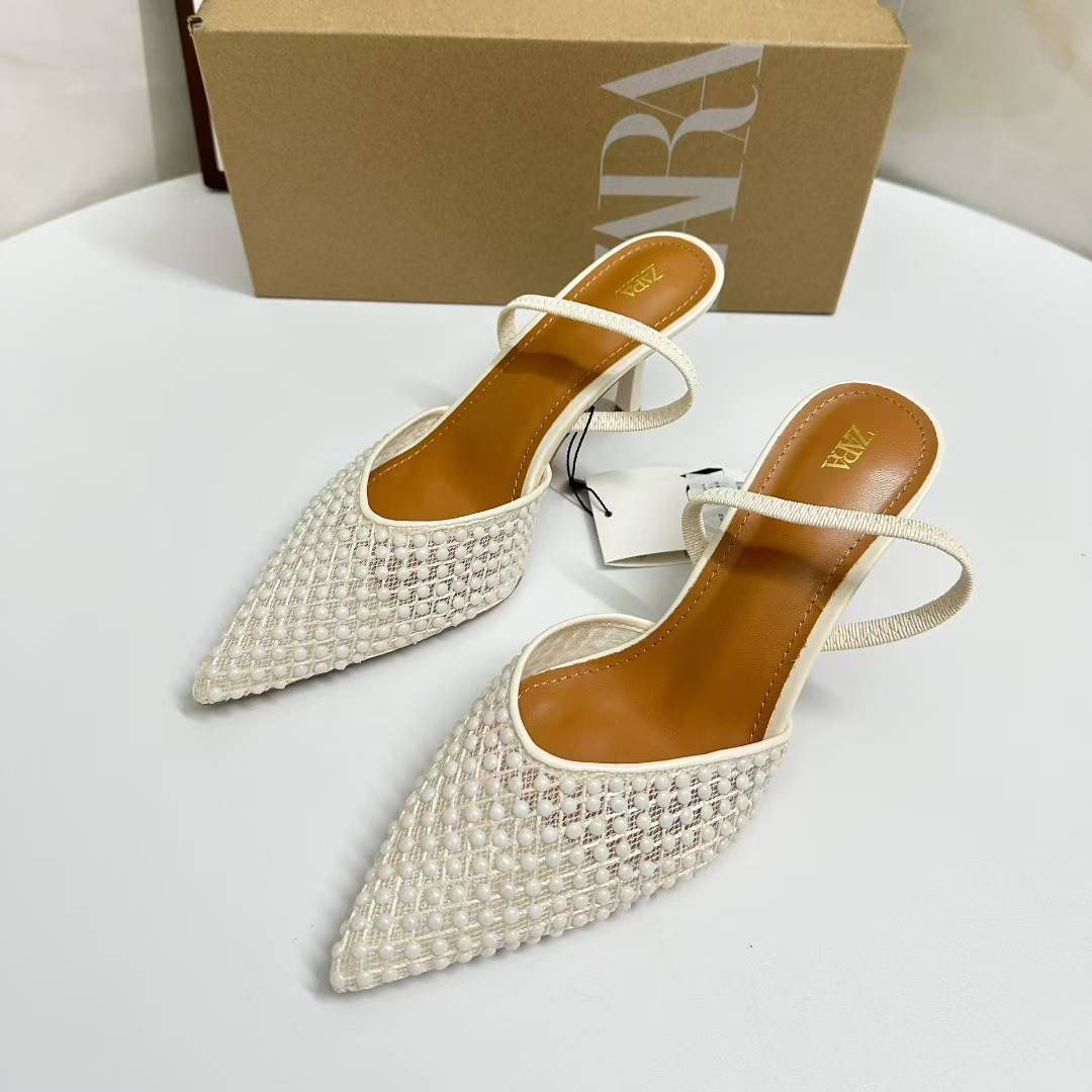 كعب ZARA نسائي صيفي بتصميم شبكي مفرغ ومقدمة مدببة