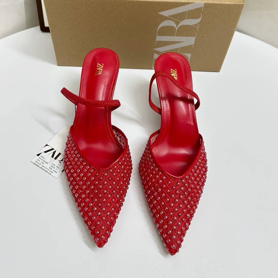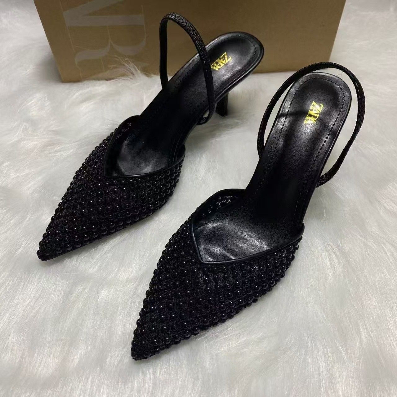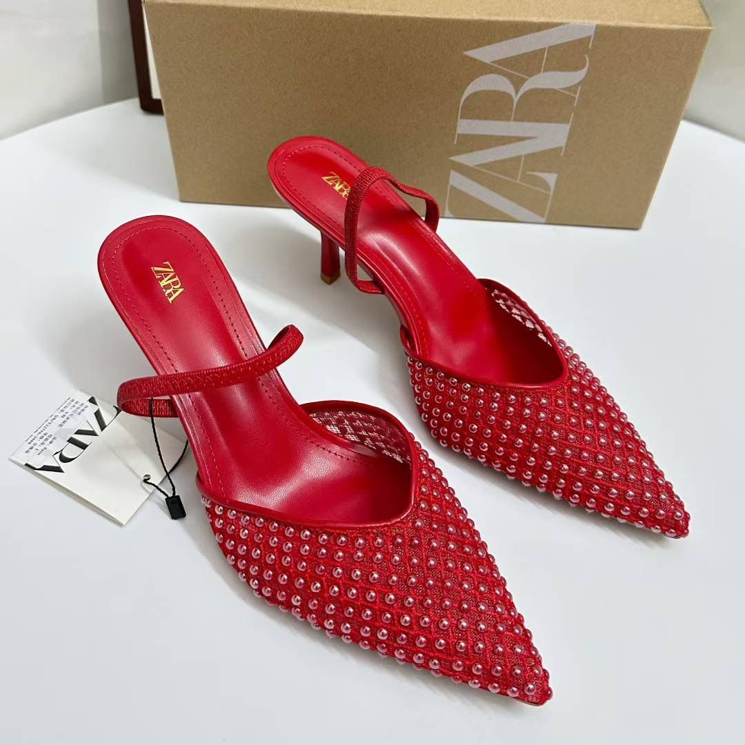 كعب ZARA نسائي صيفي بتصميم شبكي مفرغ ومقدمة مدببة