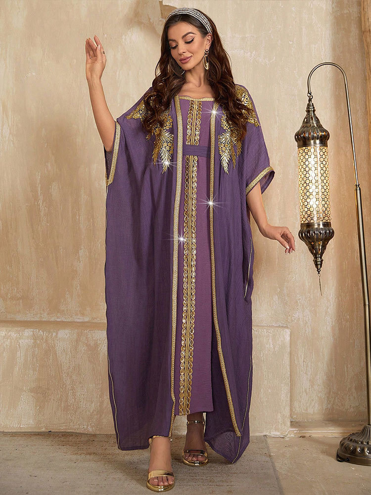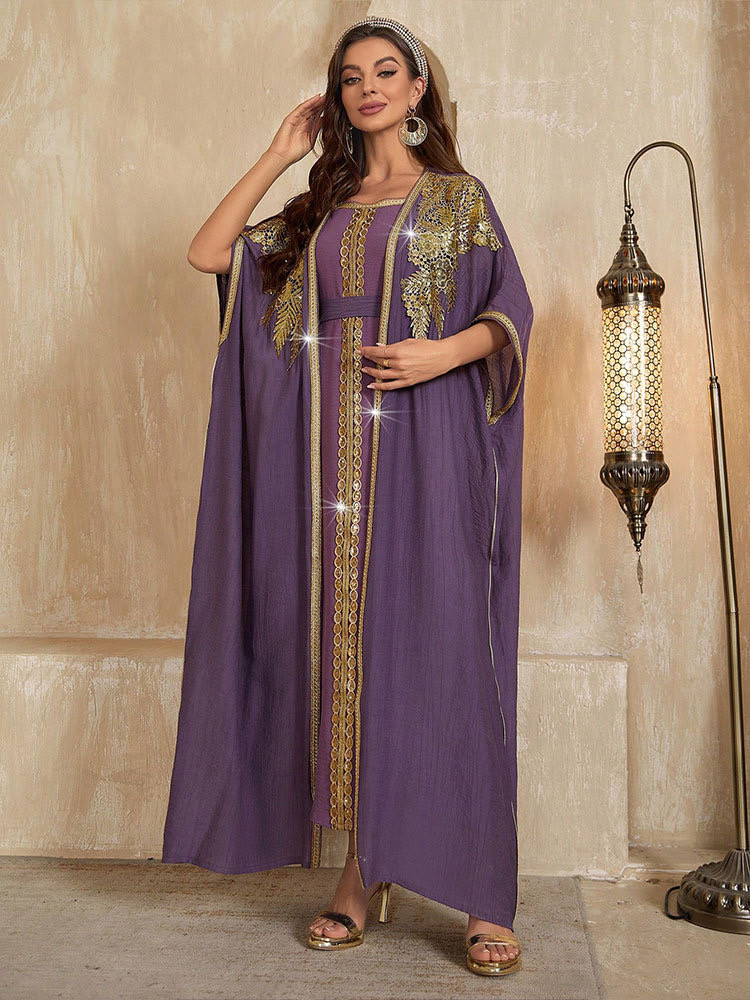 قفطان مغربي من قطعتين مع تطريز فاخر خفيف