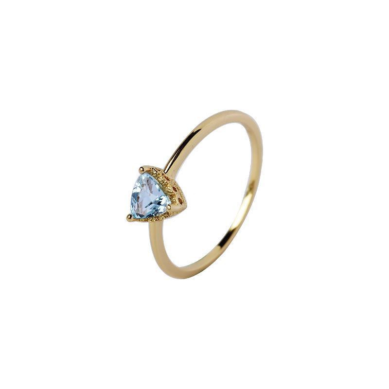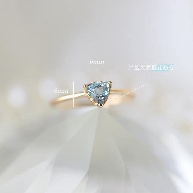 خاتم بتصميم فريد من الفضة الإسترلينية S925 مرصّع بحجر التوباز الأزرق الطبيعي بقَطع مثلث