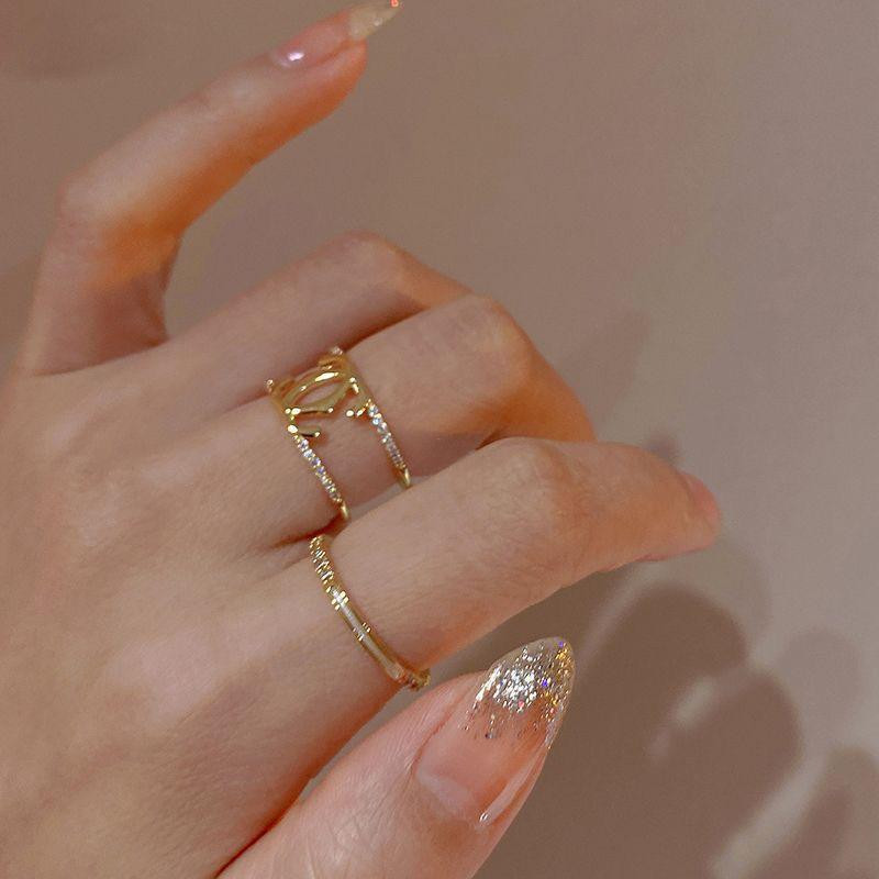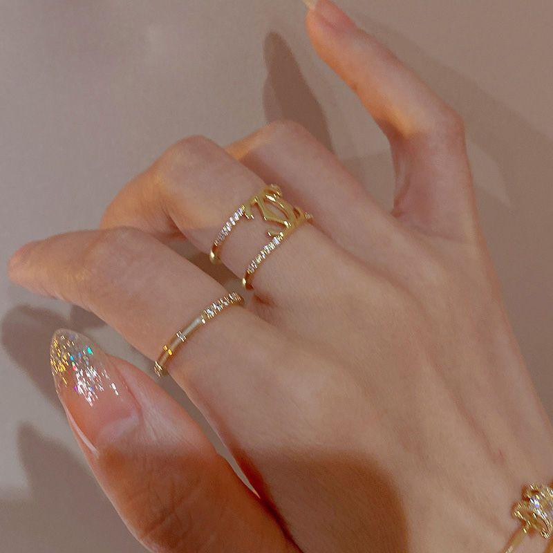 خاتم نسائي أنيق 2 قطع بتصميم فاخر صغير مميز، ستايل جديد بلمسة ريترو عصرية، إكسسوار أنثوي