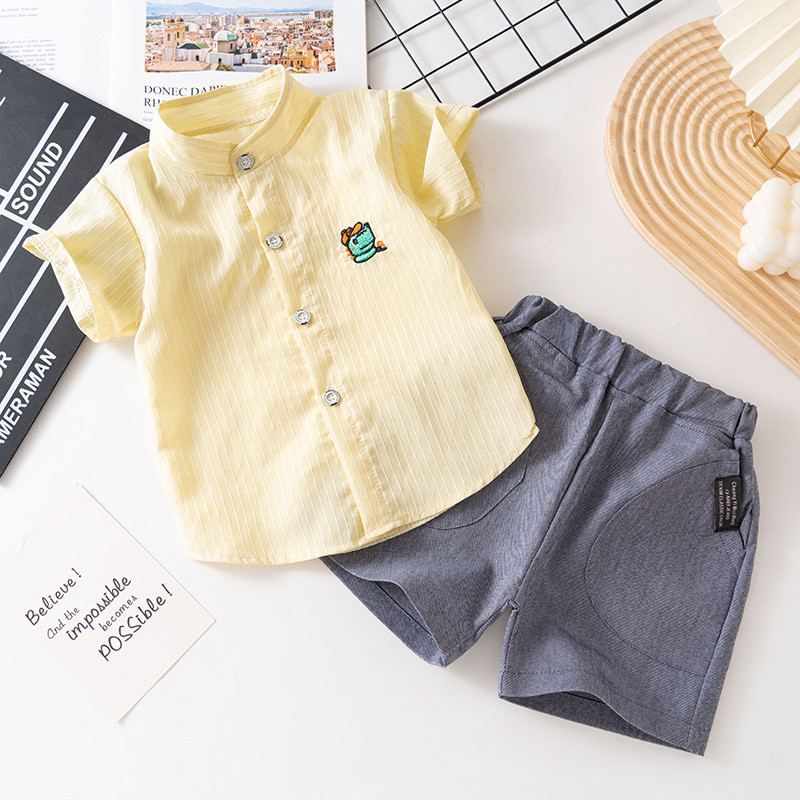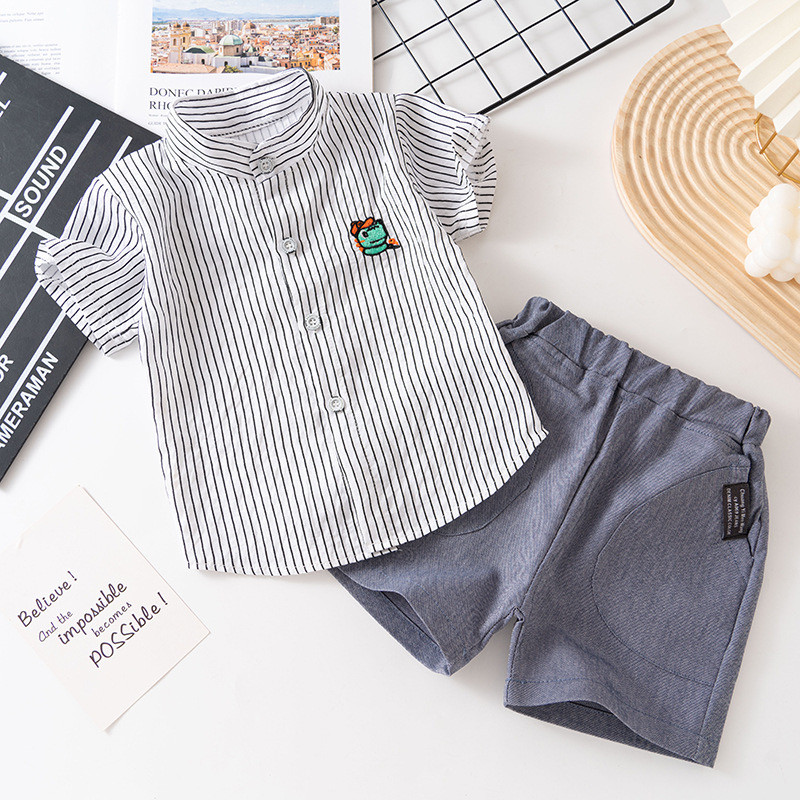 قميص مخطط صيفي للأطفال وأكمام قصيرة مكونة من قطعتين