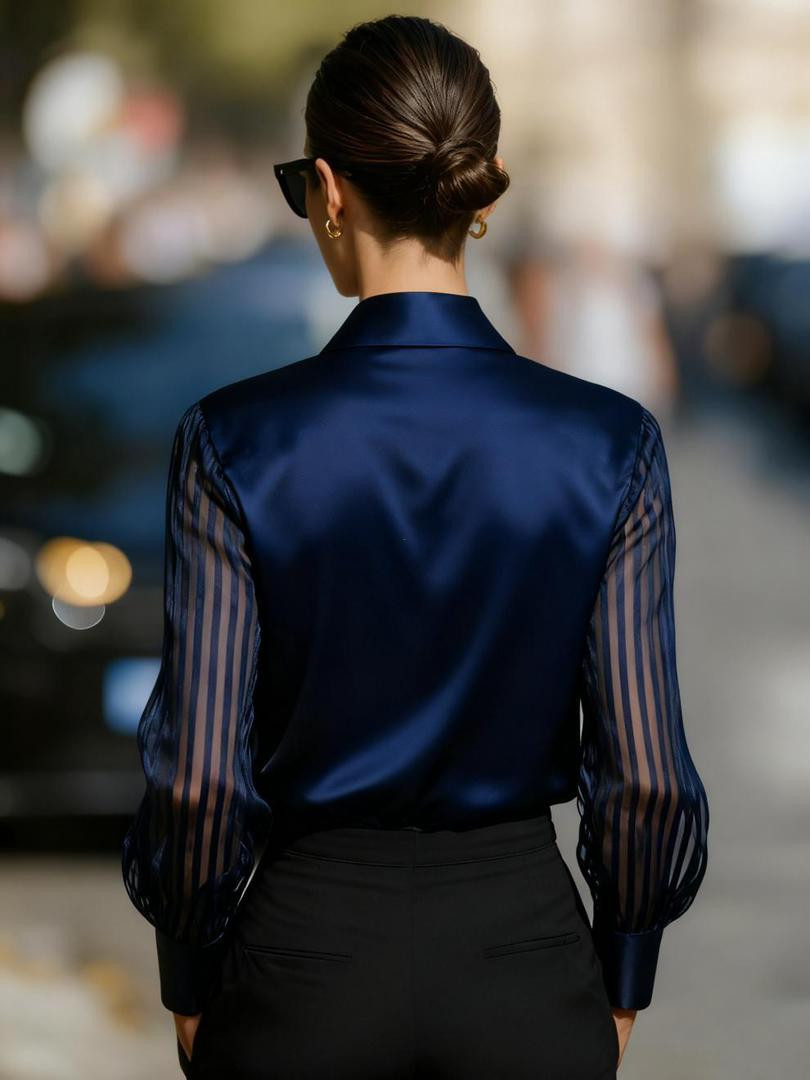 قميص ساتان ناعم بأكمام شفافة وقَصّة أنيقة