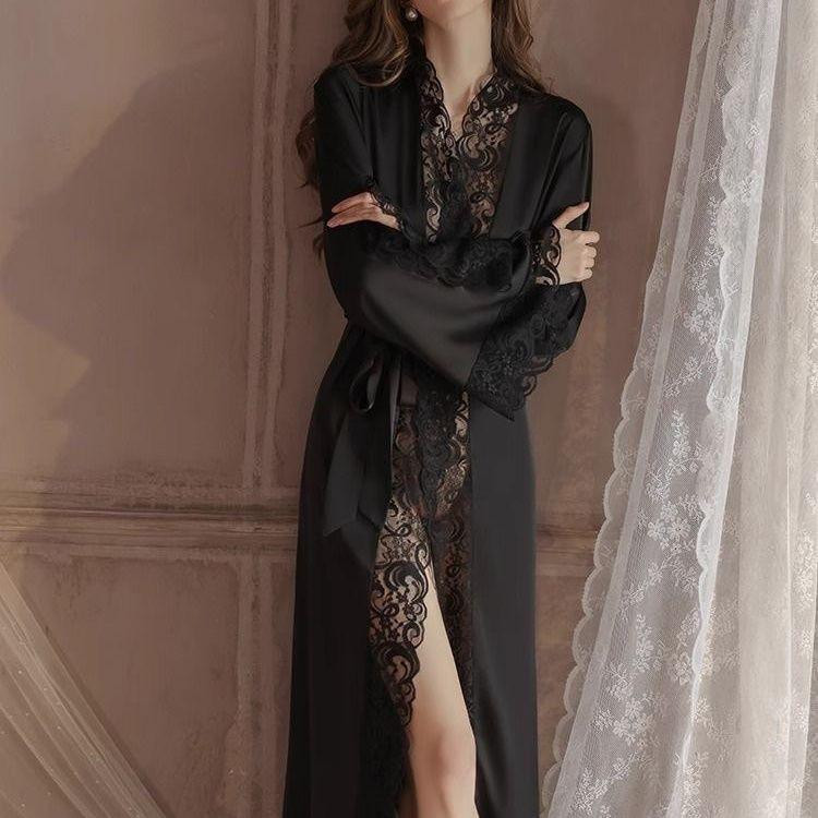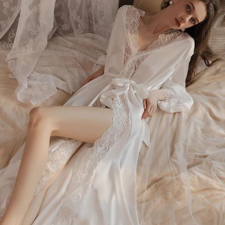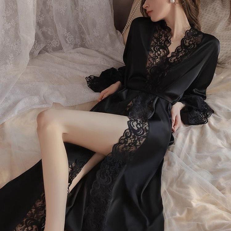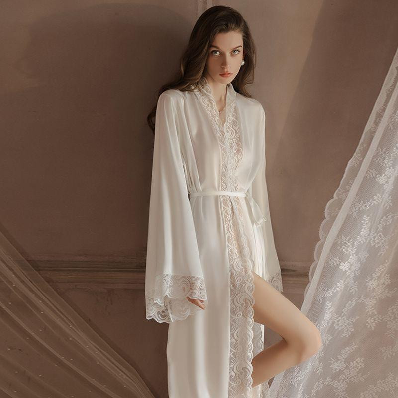 لبس نوم نسائي طويل – قماش ساتان بارد، بأكمام طويلة،