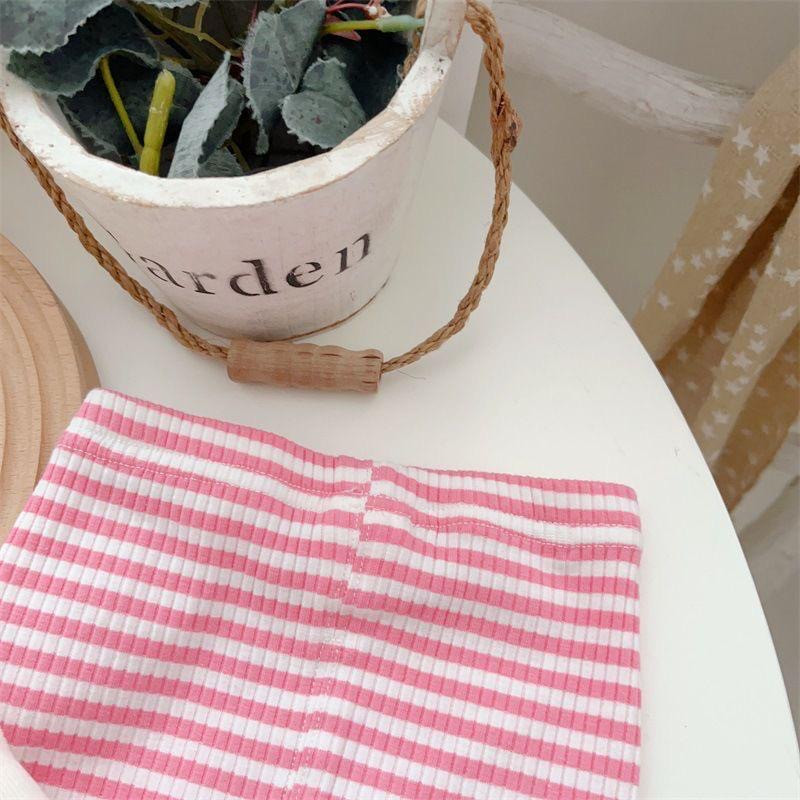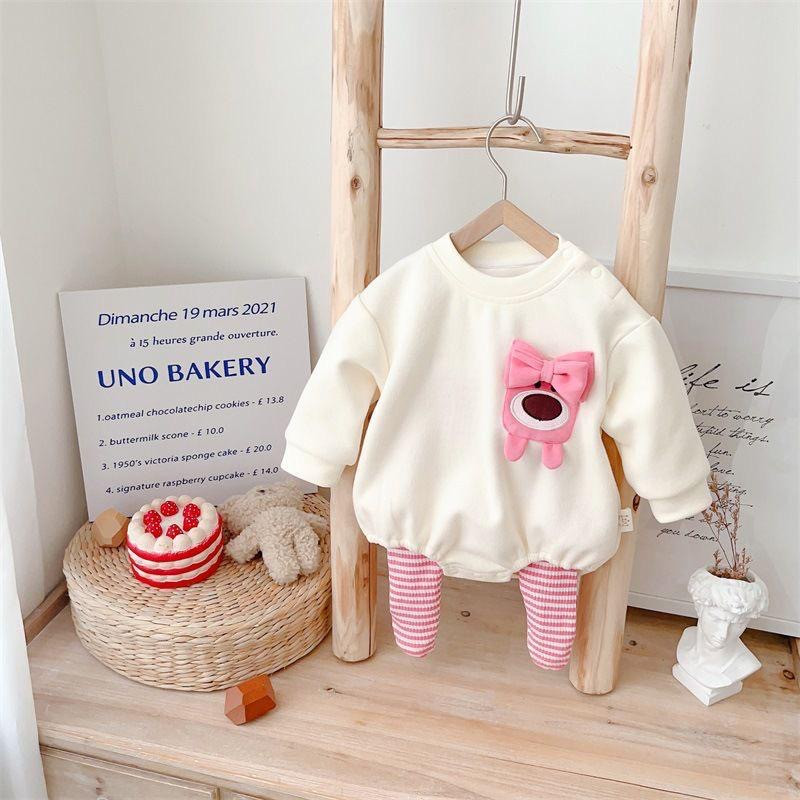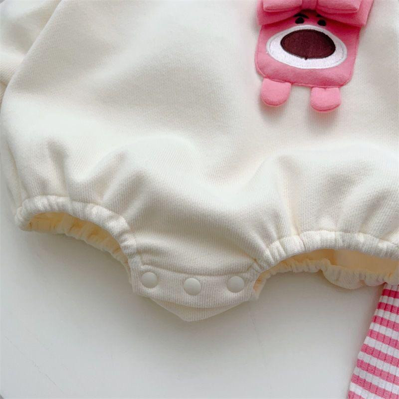 مجموعة أطفال وردية (قطعة علوية بتصميم دب فراولة وبنطال مخطط)