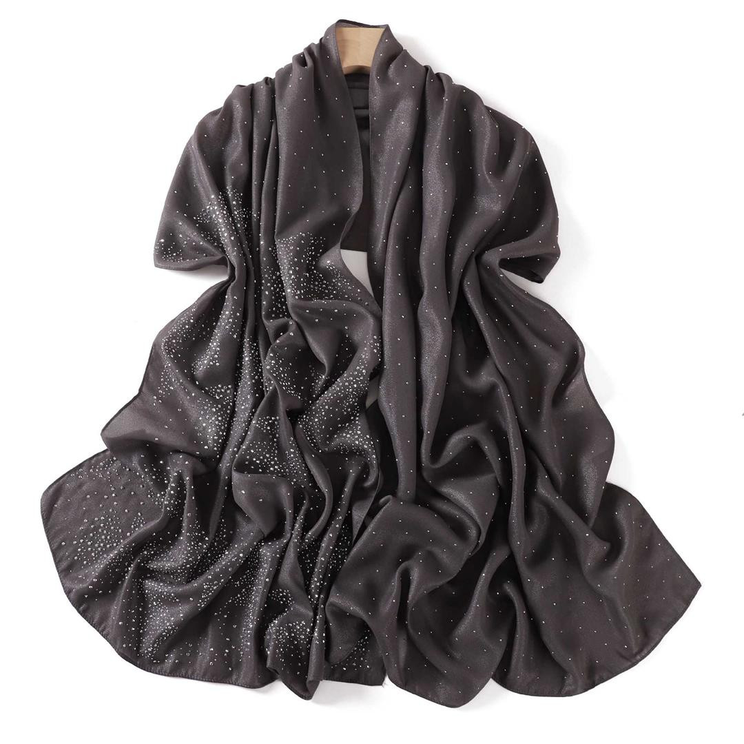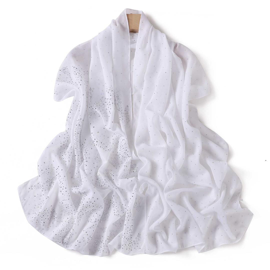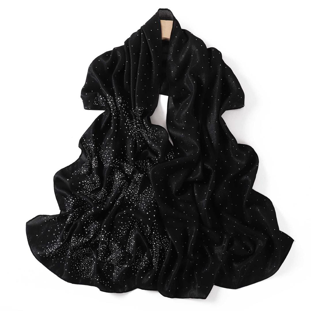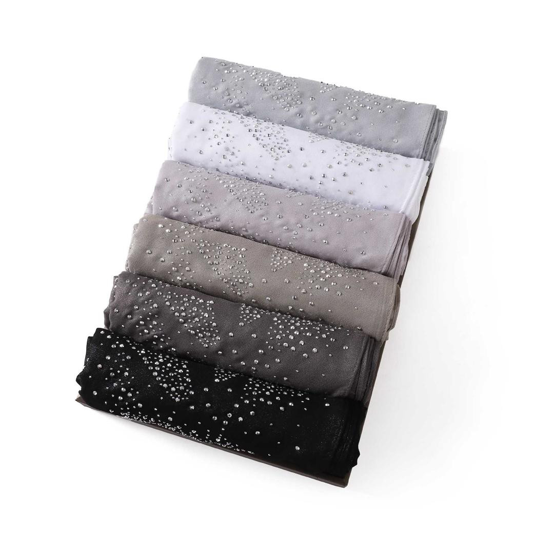 وشاح شيفون فاخر بتصميم سماء مرصعة بالنجوم ولمسات ترتر لامعة، بخيوط حريرية ناعمة يمكن ارتداؤه كوشاح أو شال أو غطاء شاطئ أنيق