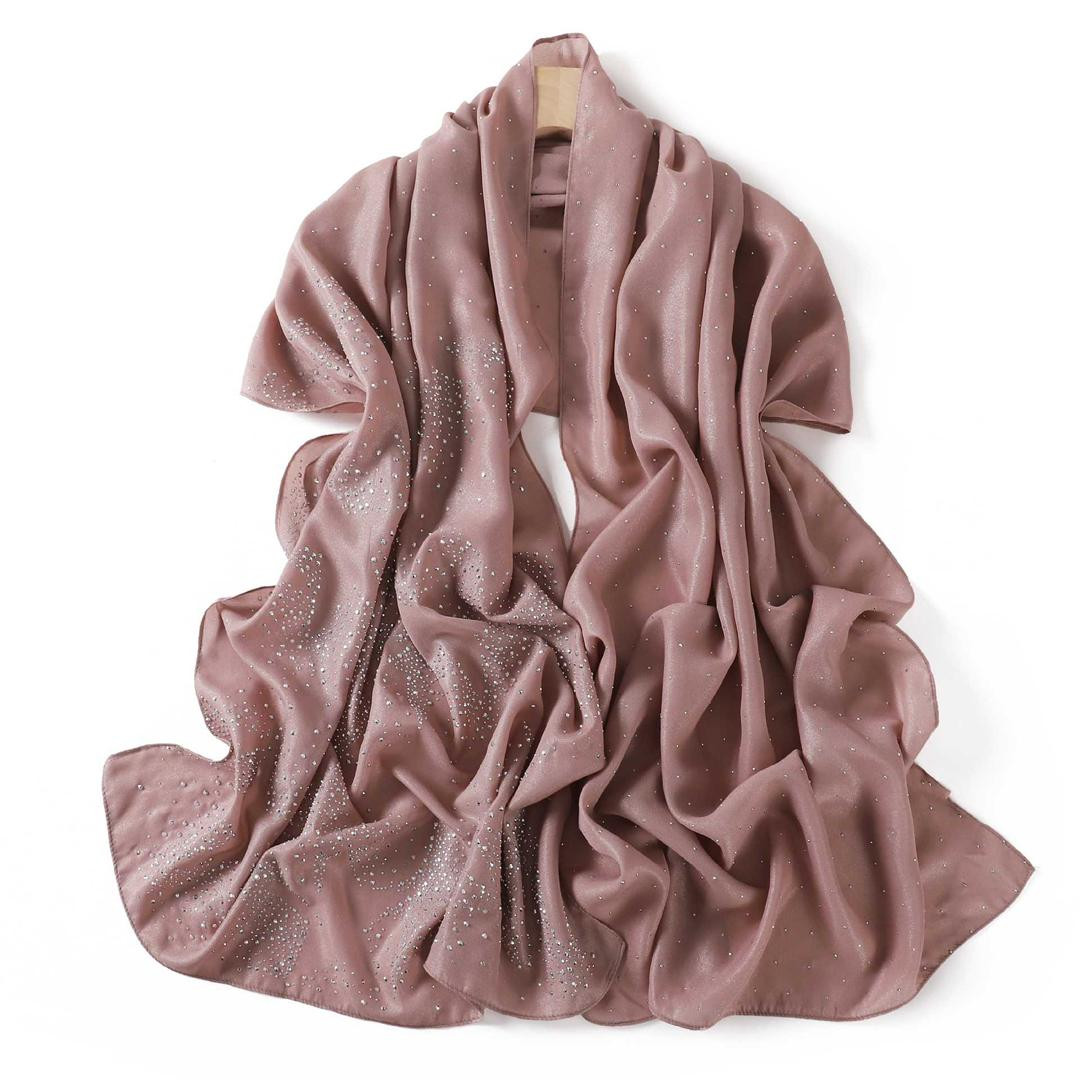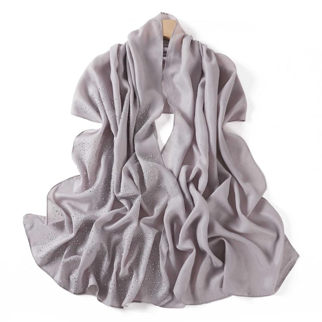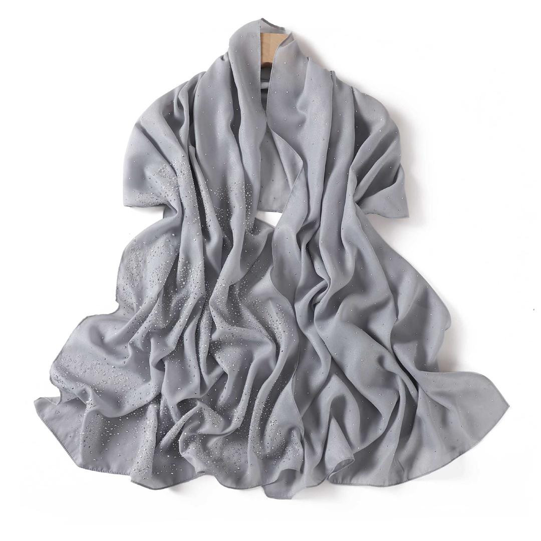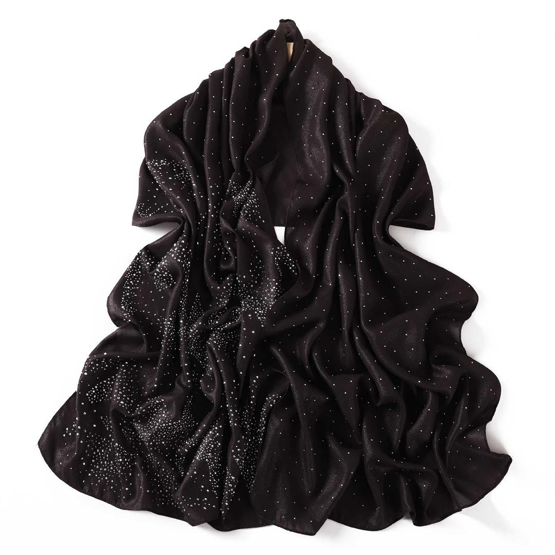وشاح شيفون فاخر بتصميم سماء مرصعة بالنجوم ولمسات ترتر لامعة، بخيوط حريرية ناعمة يمكن ارتداؤه كوشاح أو شال أو غطاء شاطئ أنيق