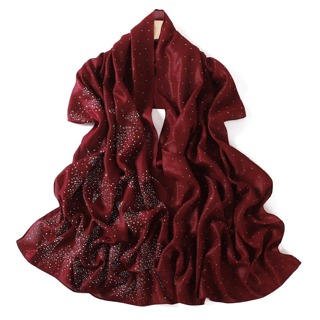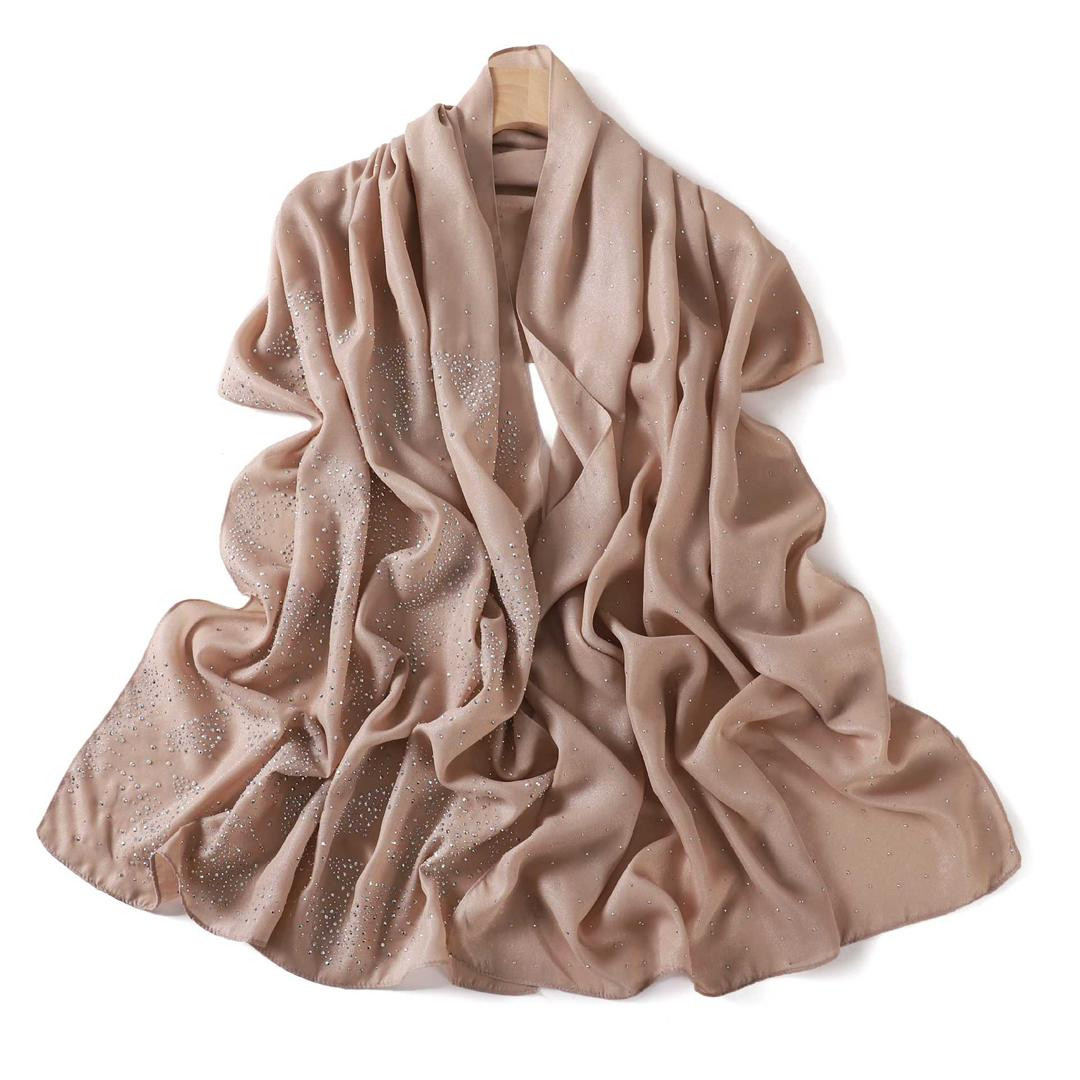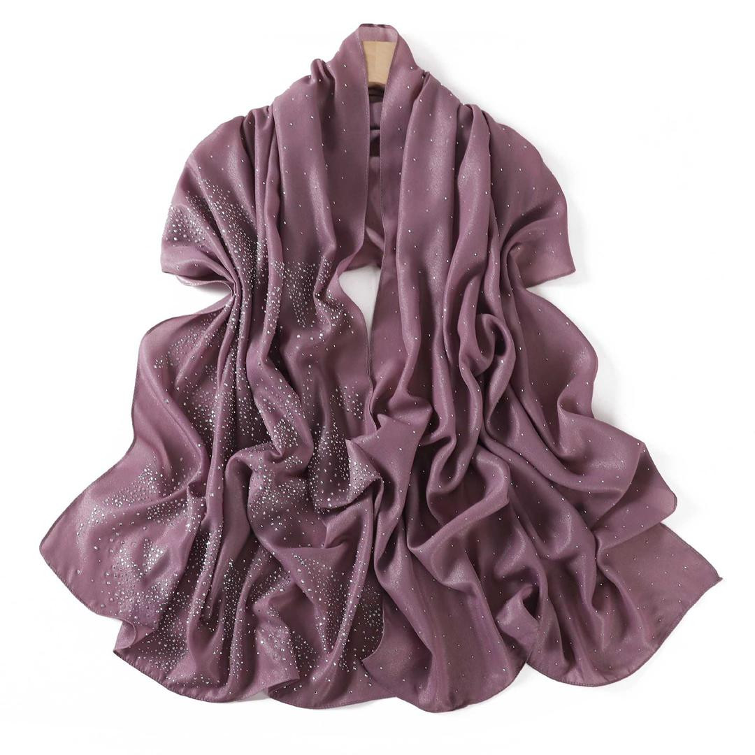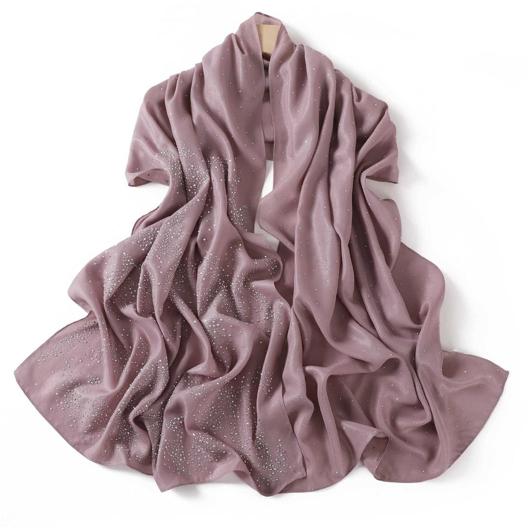 وشاح شيفون فاخر بتصميم سماء مرصعة بالنجوم ولمسات ترتر لامعة، بخيوط حريرية ناعمة يمكن ارتداؤه كوشاح أو شال أو غطاء شاطئ أنيق