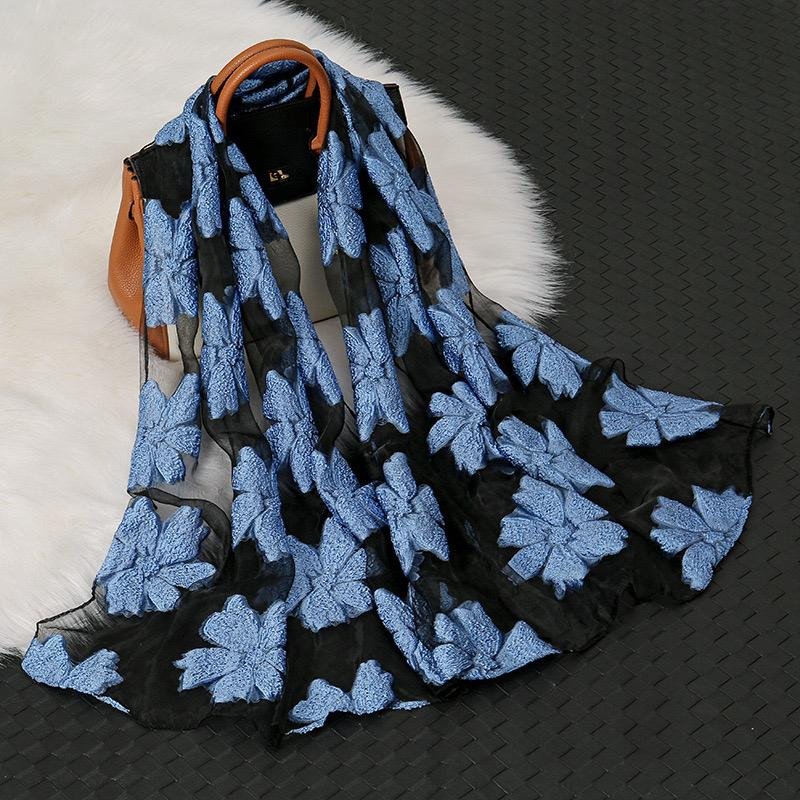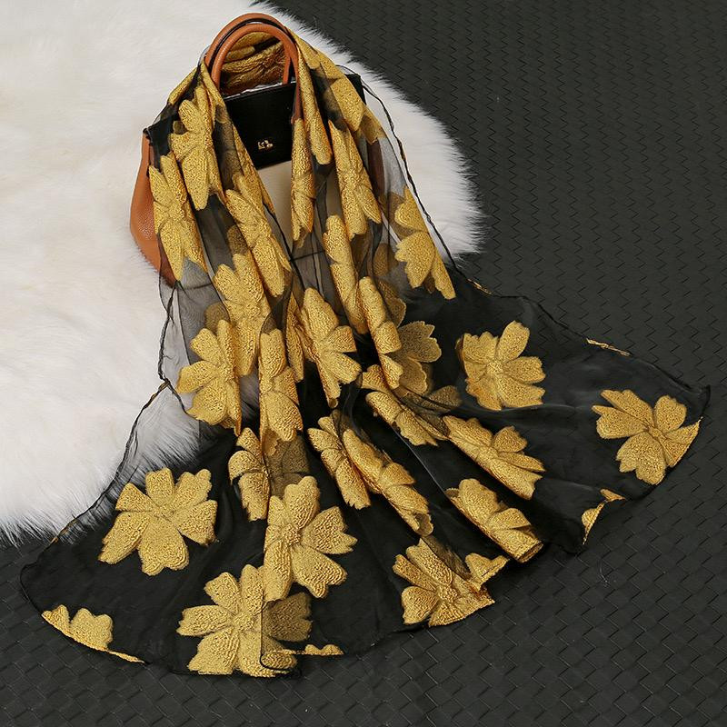 وشاح طويل ( 2 قطع ) مطبوع بتصميم أزهار من قماشة أورغنز