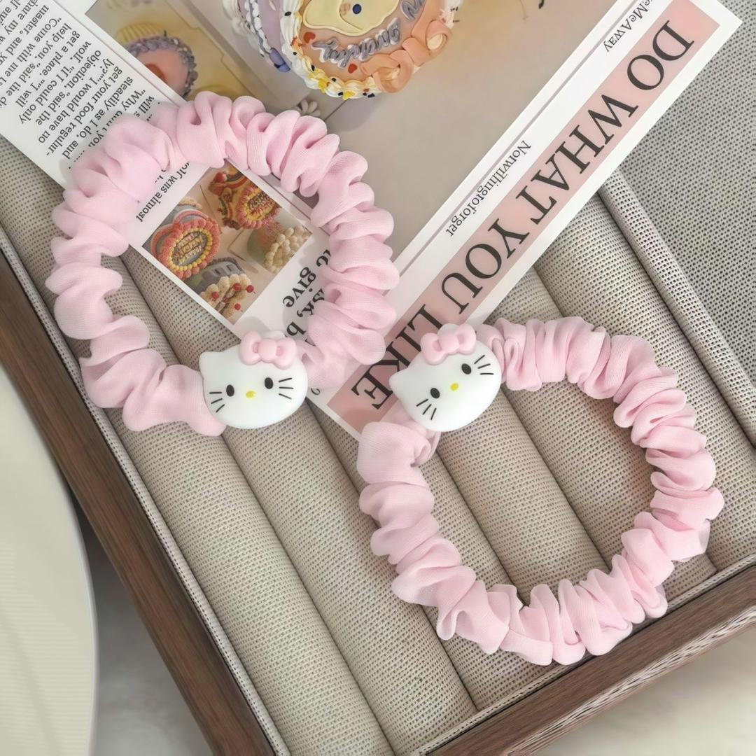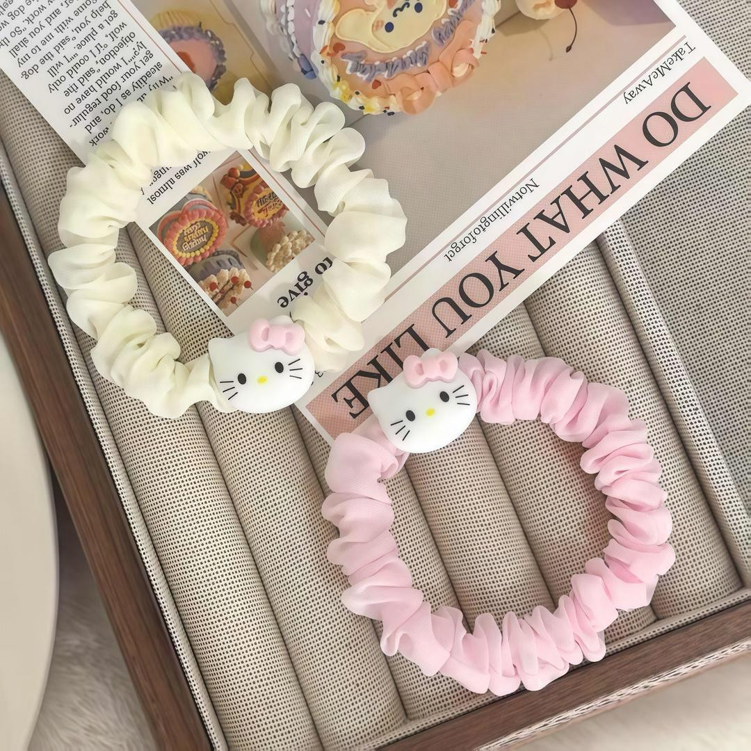 ربطة شعر (إكسسوار للشعر) بتصميم كيوت على شكل قطة كرتونية (ستايل كيتي)، مصنوعة من قماش مجعد