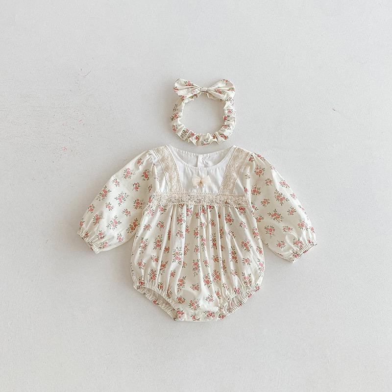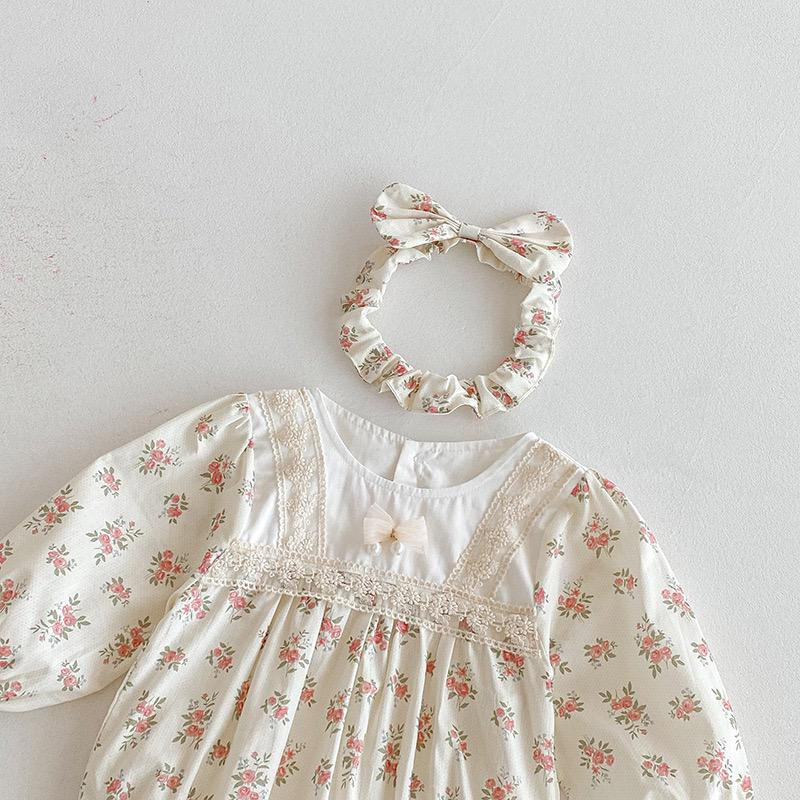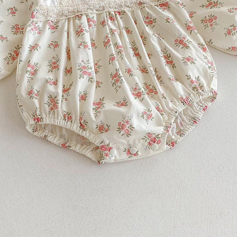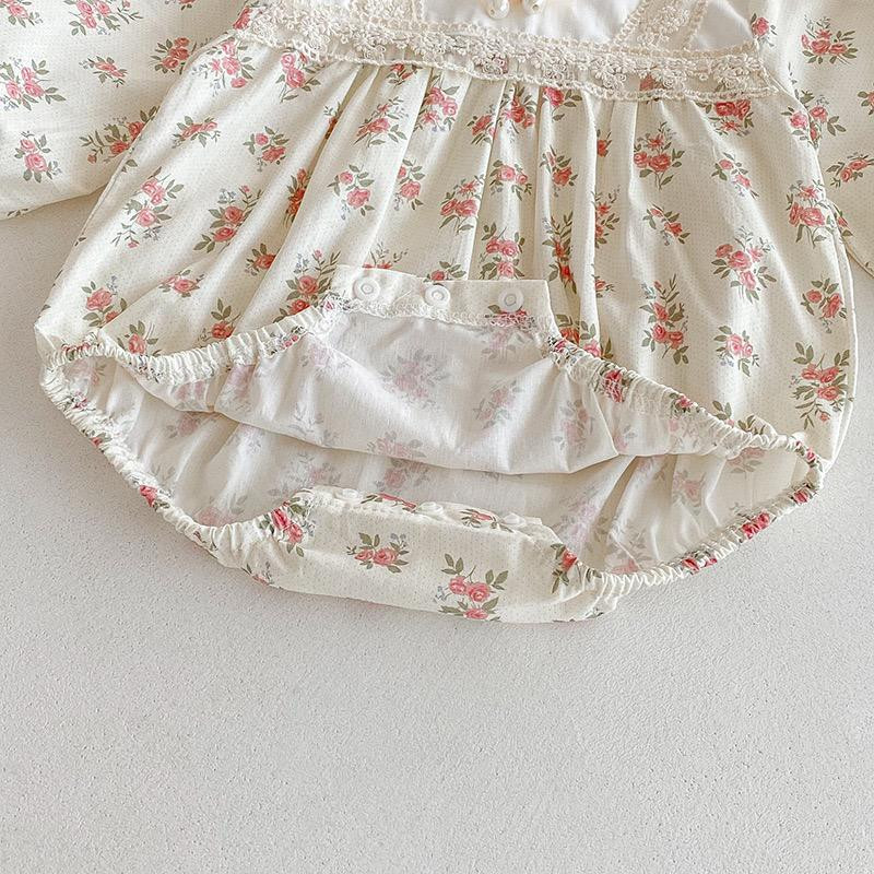 رومبر بناتي كيوت بنقشة ورد صغيرة ودانتيل ناعم