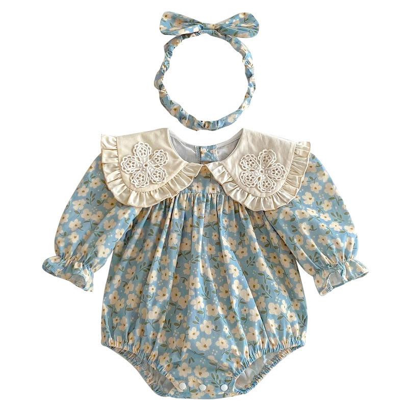 رومبير بناتي مزين بنقشة زهور وياقة دمية ?