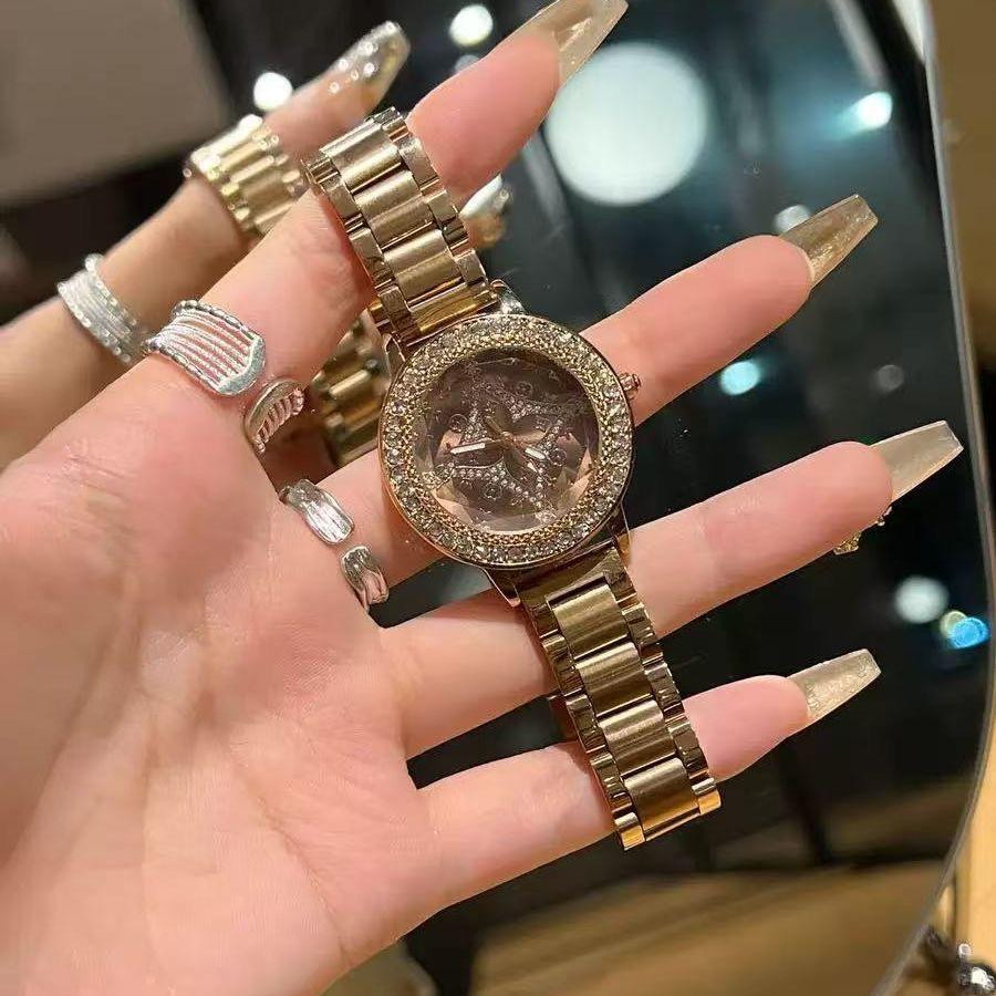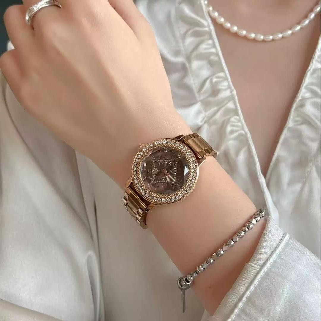 ساعة نسائية أنيقة بتصميم كلاسيكي راقٍ بواجهة مستوحاة من السماء المرصعة بالنجوم