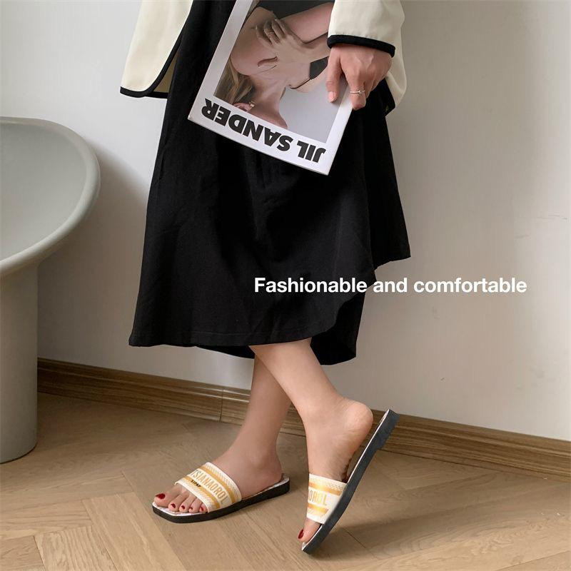 شبشب 2025 جديد بنقشة حروف، مناسب للخروج، مسطح بنعل لين ومريح بنمط أنيق