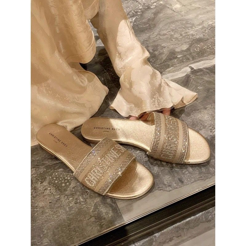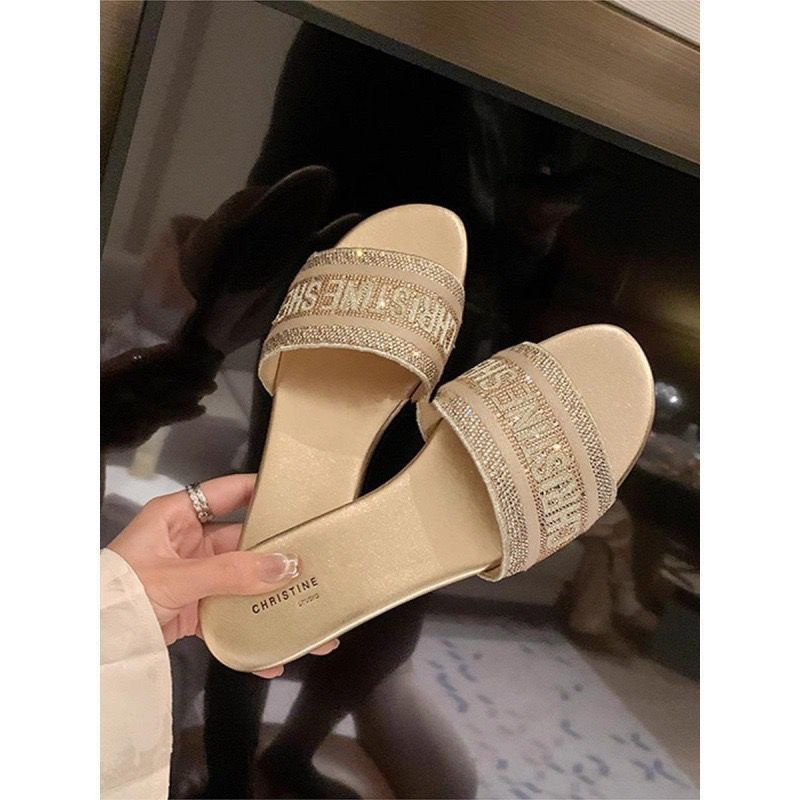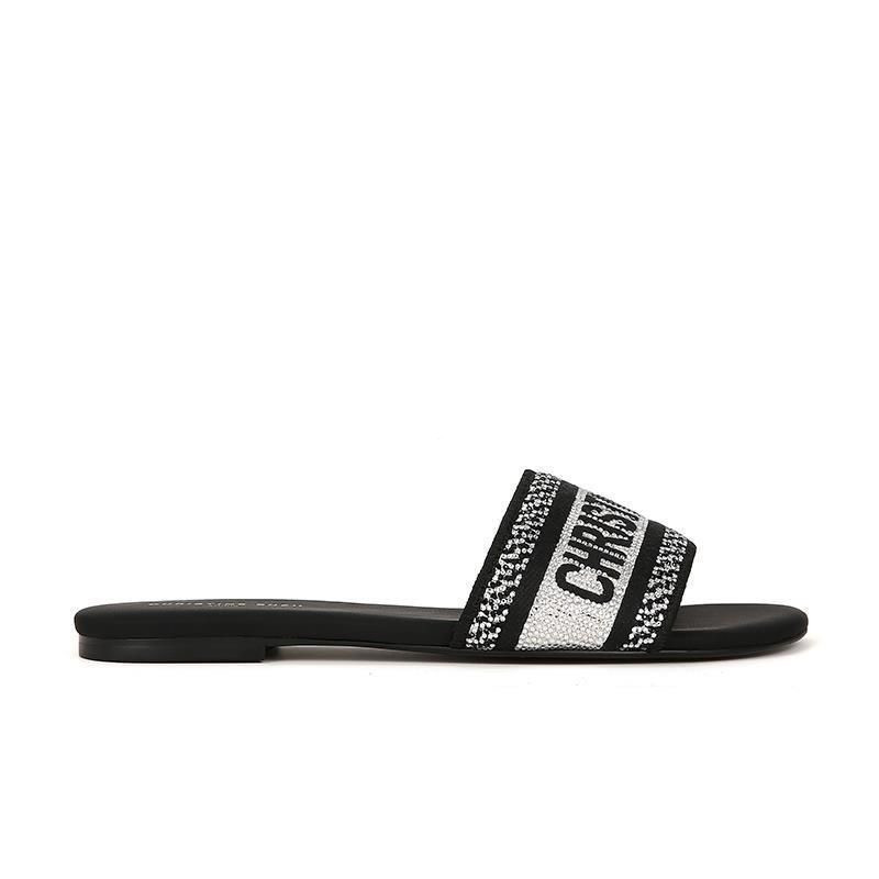 شبشب نسائي صيفي مزين بالأحجار (ألوان: أسود / فضي