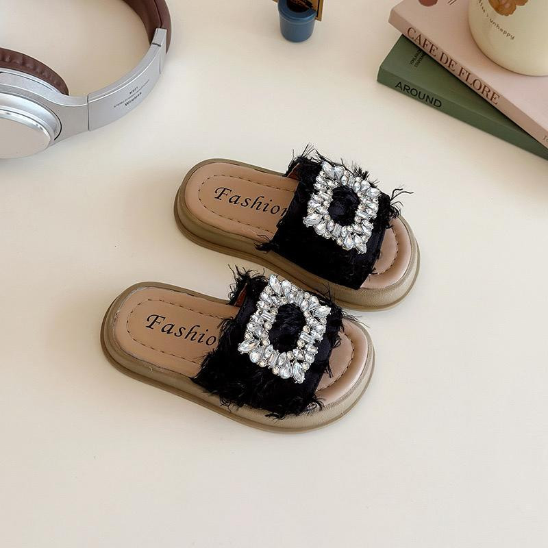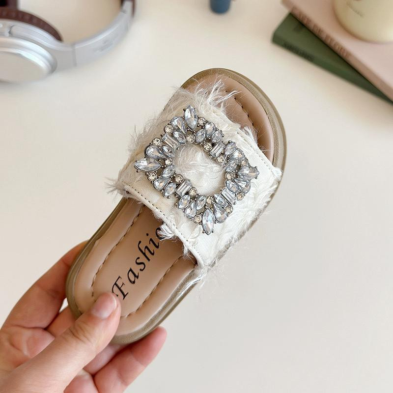 صندل بناتي بتزيين كريستالي ومشبك مربع