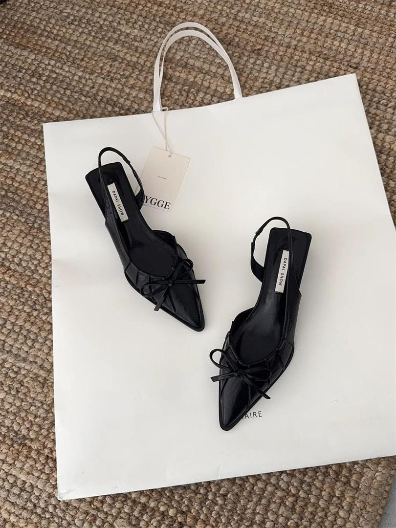 صندل نسائي أنيق بتصميم فرنسي عصري بمقدمة مدببة مغطاة وحزام خلفي مع فراشة مطوية جذابة