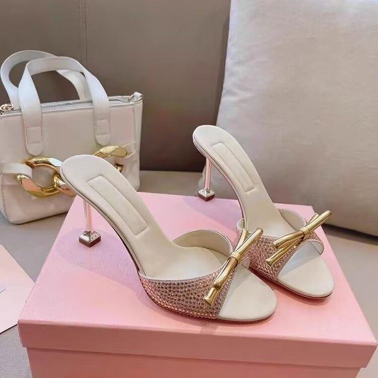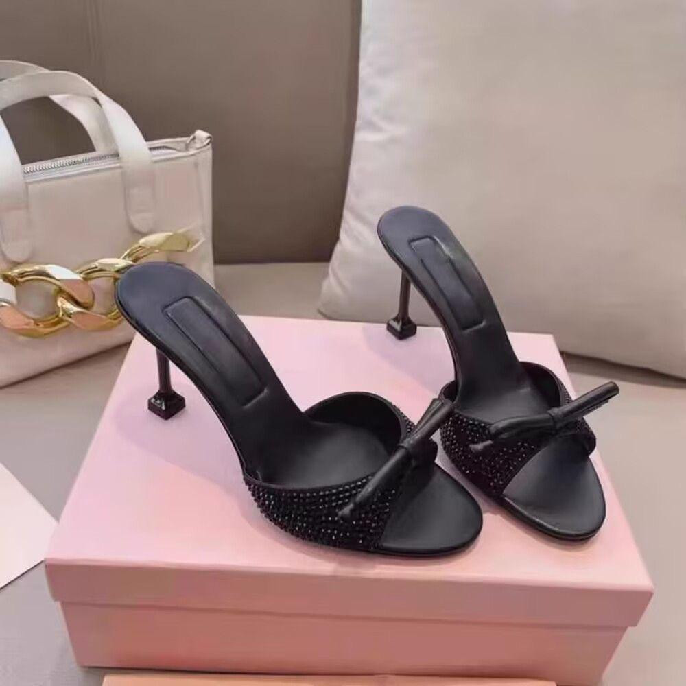 صندل نسائي بكعب عالي مفتوح من الأمام بتصميم أنيق ومشبك لامع