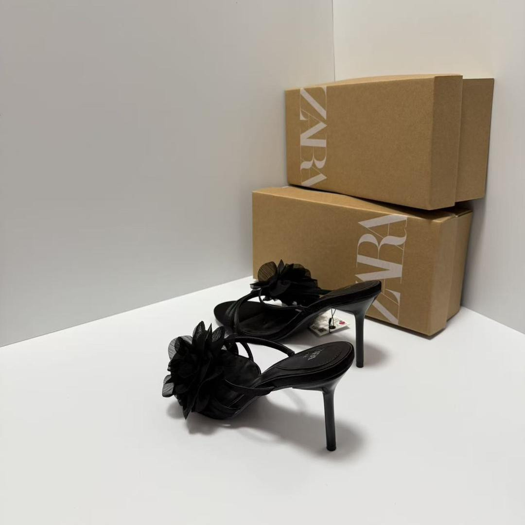 صندل ZARA نسائي بكعب رفيع مزين