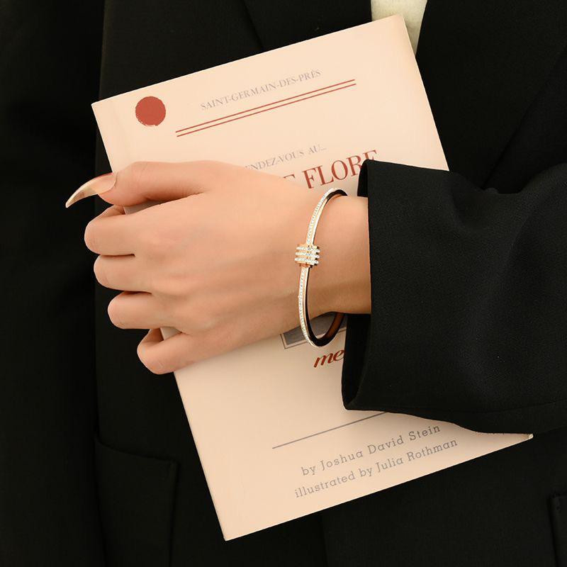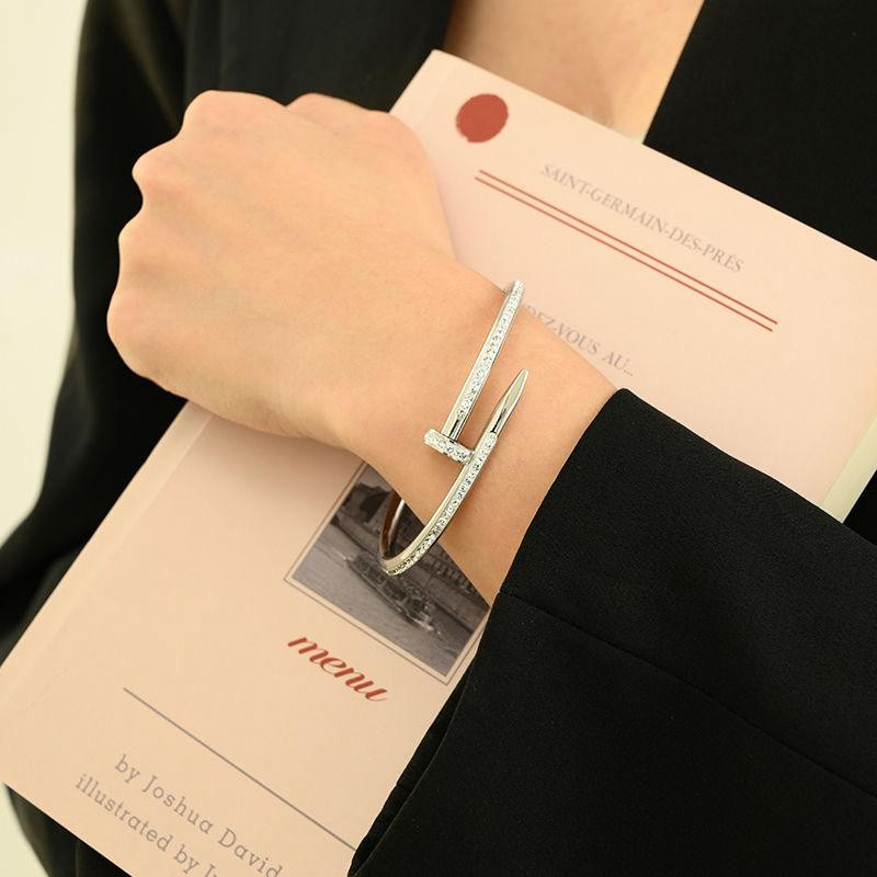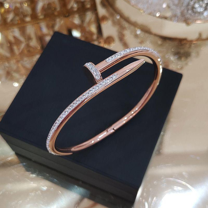 سوار مسمار من الفولاذ التيتانيومي المقاوم للتغير، مطلي مع فصوص كريستال،تصميم عصري