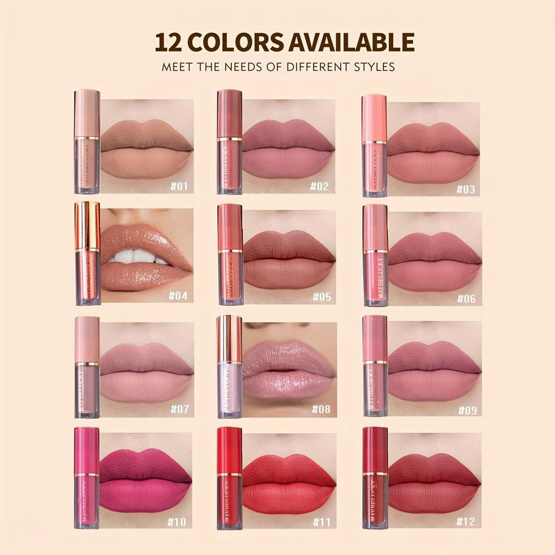 طقم أحمر شفاه احترافي مكوَّن من 12 لوناً بتصميم أوروبي عصري، يحتوي على درجات مطفية ولامعة، يتميّز بثبات عالٍ ولا يلطّخ الكوب، كما يتغيّر لونه بلطف عند الاستخدام ليمنح مظهراً جذّاباً