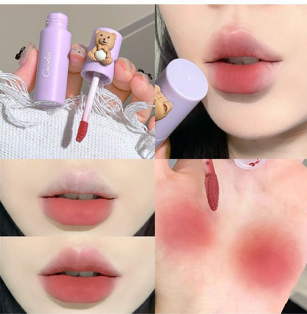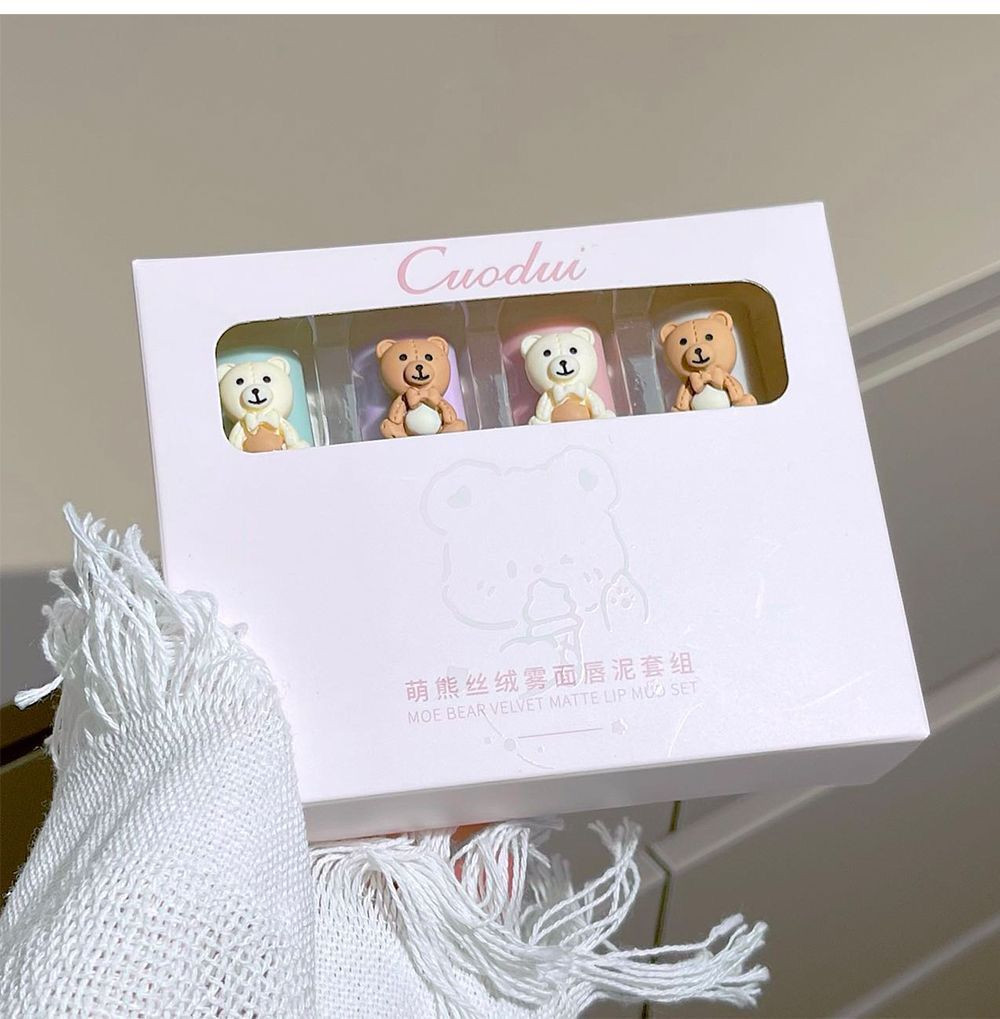 طقم أحمر شفاه صغير (٤ حبات) بعلبة هدية تصميم دب كيوت مطفي حريري ناعم يمنح الشفاه لونًا طبيعيًا وجذابًا ??