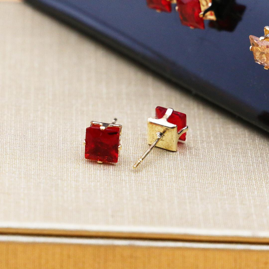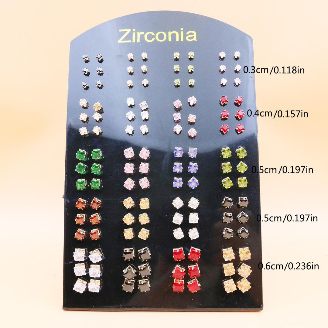 طقم أقراط مثبتة – 60 زوج بتصميم كرتوني على بطاقة، أحجار زركون ملونة وبيضاء بقاعدة ذهبية مربعة كل الالوان